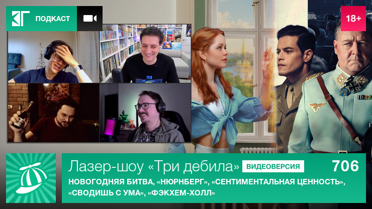 6Лазер-шоу «Три дебила» – 706: Новогодняя битва, «Нюрнберг», «Сентиментальная ценность», «Сводишь с ума», «Фэкхем-Холл»