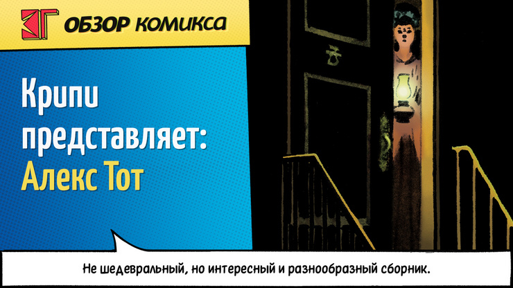 После персонального томика Стива Дитко впору было подумать, что все книги цикла «Крипи» будут работать по единой схеме: сплошь короткие истории с резкими концовками, обрывающими повествование без особой заботы о том, успело ли то вдоволь раскрыться. Но виной тому, конечно, Арчи Гудвин: с разнообразием идей-то у редактора журналов проблем не было, а вот структура их исполнения страдала от определённой шаблонности. К счастью, Алекс Тот — чьему сборнику посвящён наш сегодняшний разговор — работал с куда большим количеством разнообразных сценаристов (а иногда и сам сюжеты придумывал). А потому и книга оказалась в итоге заметно более разнообразной и увлекательной — при всё уважении к именитому товарищу Дитко.