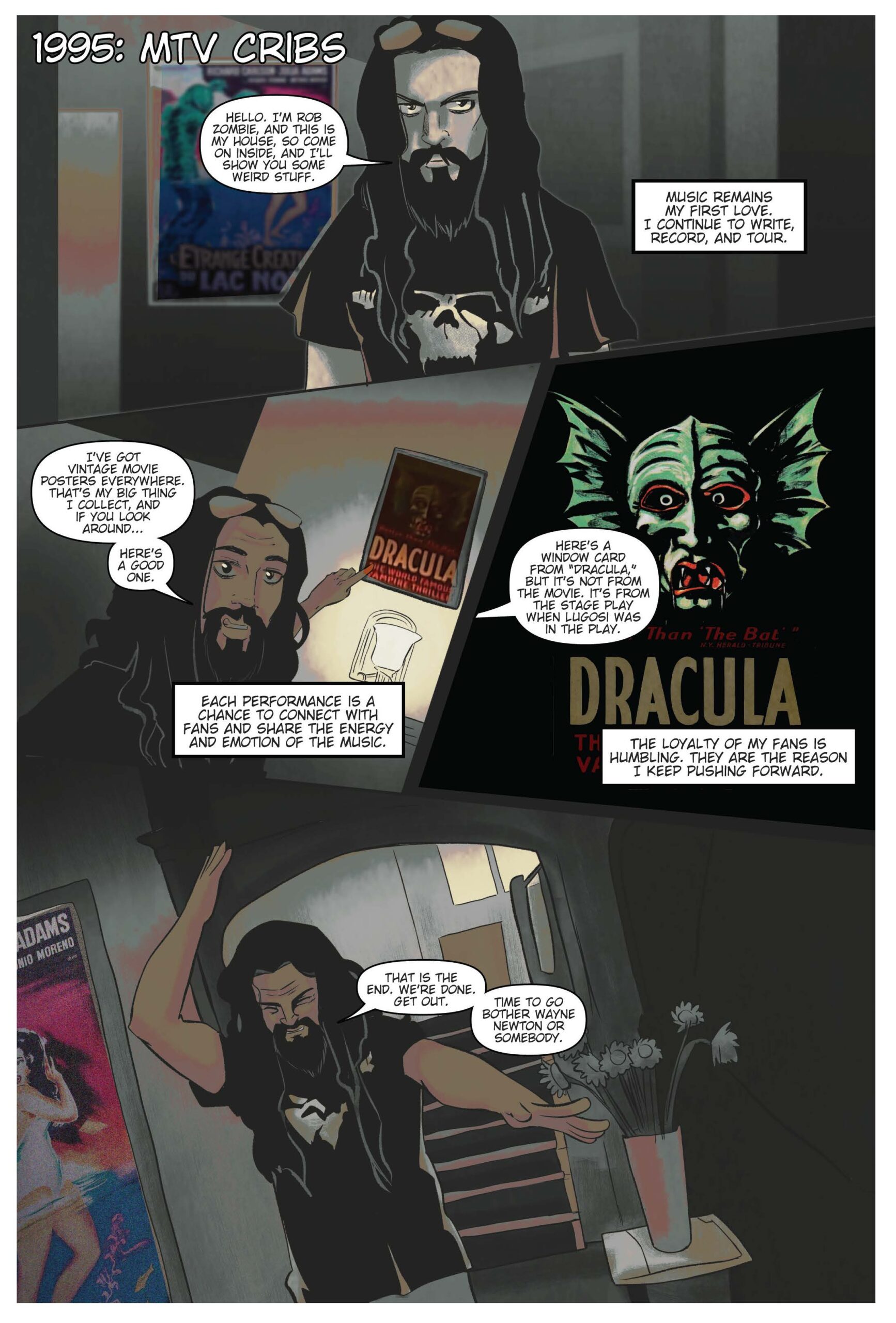 Комикс предлагает читателям взглянуть на насыщенную музыкальную карьеру Роба, творческий драйв, стоящий за его концептуальными проектами, и душещипательную историю любви с его женой Шери Мун Зомби. Благодаря захватывающим визуальным эффектам и увлекательному повествованию этот комикс показывает новый взгляд на жизнь и творчество настоящей легенды.
