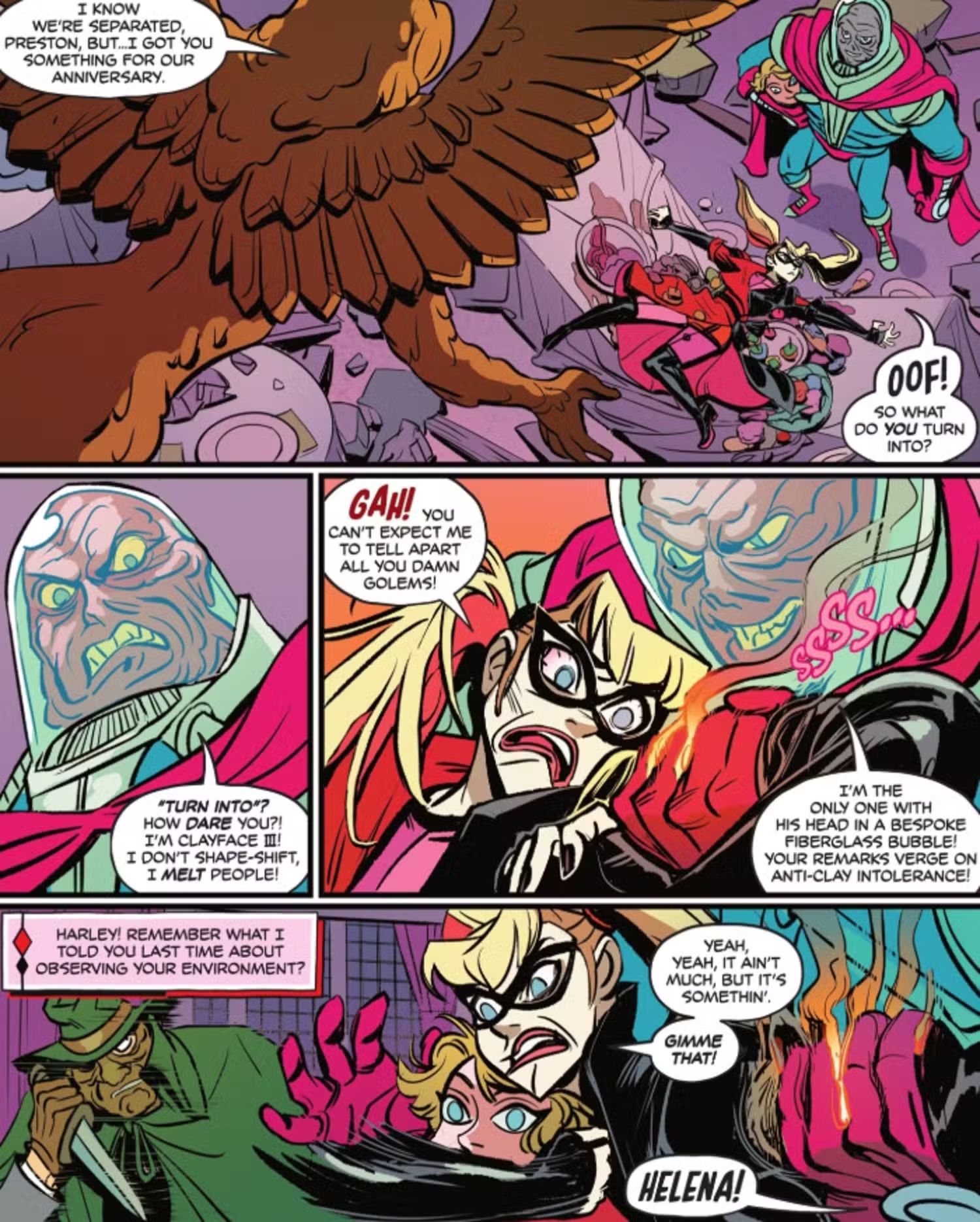 Мы периодически отслеживаем текущие похождения Харли Квинн. В последнем выпуске своей сольной серии она неудачно вписалась в жаркую вечеринку, что чуть не стоило ей жизни. После обычного рабочего дня в Harley Quinn #47 антигероиня начинает свой вечер с того, что заглядывает на шикарную и гламурную тусовку в самом центре Готэм-сити. К несчастью для Харли, её последняя попытка ограбления привела к тому, что она оказалась в центре буквального воссоединения семьи Глиноликих. Хуже того, она, кажется, забыла, что не все версии злодея — просто оборотни, и эта ошибка имеет весьма зажигательные последствия.