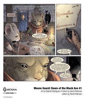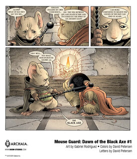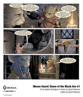Mouse Guard: Dawn Of Ther Black Axe #1 появится в магазинах комиксов 19 марта. Основную обложку нарисовал Родригес, а варианты — Петерсен, Гони Монтес, Дерек Лауфман.