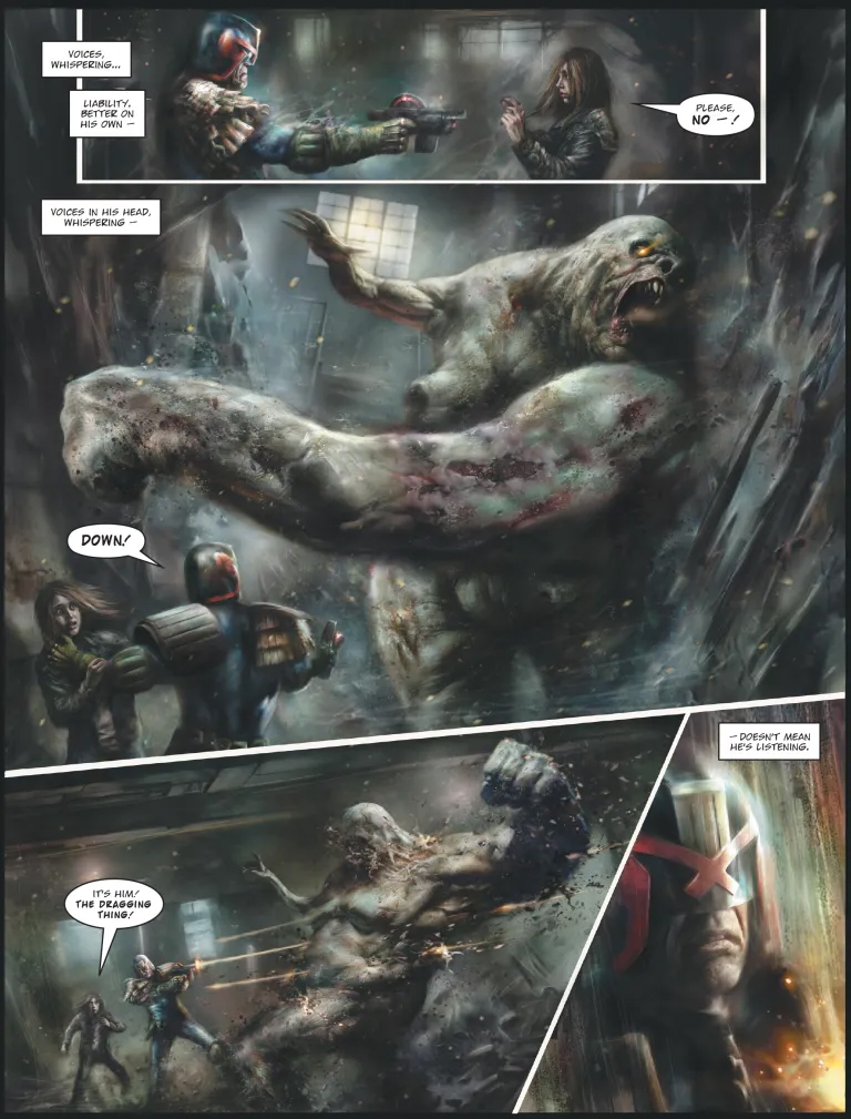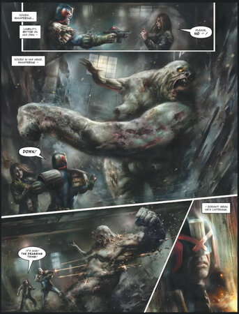 Очевидно, что Пси-судьи получают свой шанс блеснуть в подобных историях. Правда, мне нравится выводить Дредда из зоны комфорта и бросать в мрачные истории, полные ужасов, где ему придётся бороться гораздо больше, чтобы добиться успеха и выбраться живым.