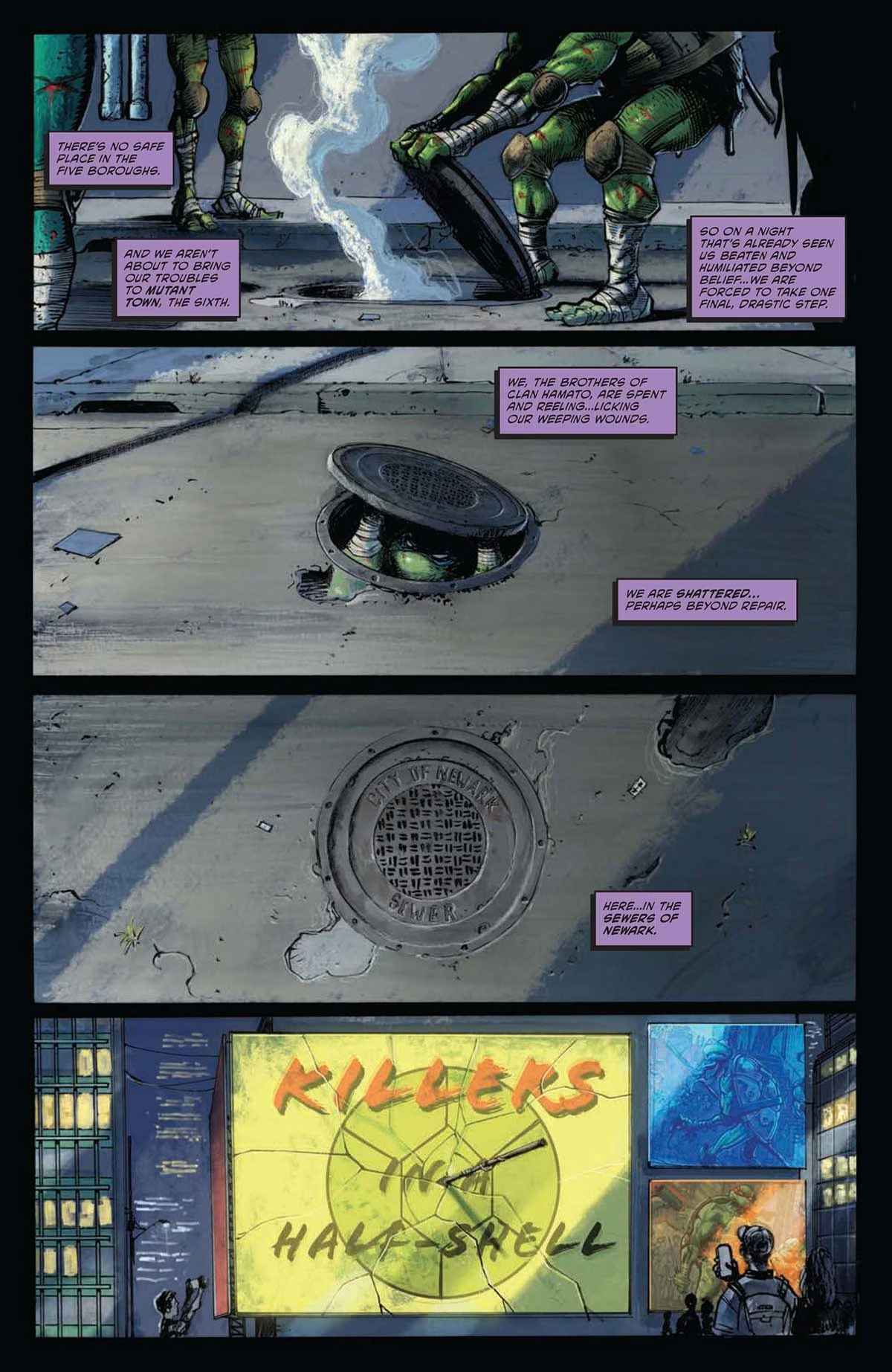 И братьям-черепашкам приходится пережить самый тяжёлый удар: Нью-Йорк больше небезопасен для них. И героям-мутантам приходится принимать радикальные меры — переселяться в канализацию Нью-Джерси!