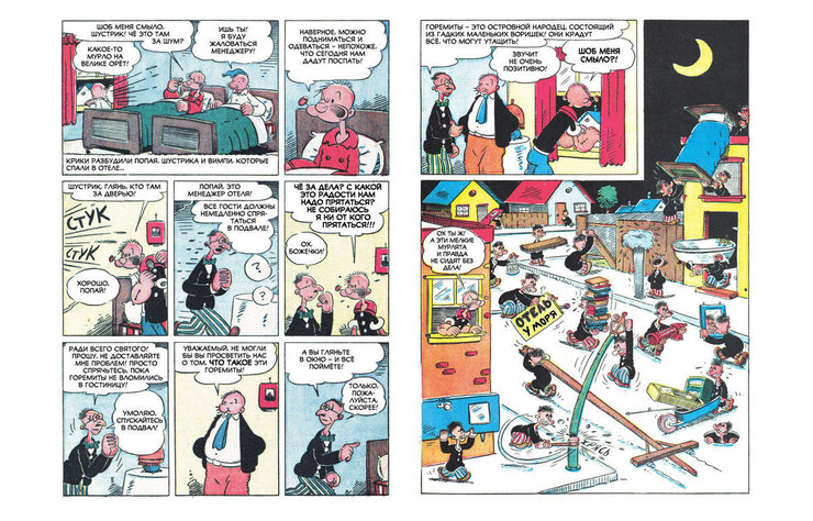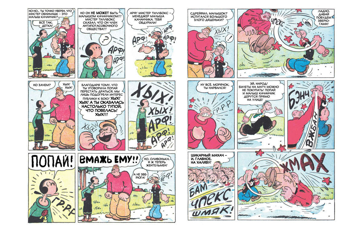В книгу «Золотые Ключи. Попай» войдут избранные сюжеты из оригинальных комиксов издательства Dell, выпущенных с 40-х по 70-е годы. Размер сборника будет зависеть от сборов на Boomstarter — не меньше 224 страниц, но в случае достижения всех дополнительных целей книга раздуется аж до 310-и! Пока, правда, авторы собрали меньше 100 тысяч, а для «полного фарша» потребуется аж 950, но впереди ещё месяц — время есть.