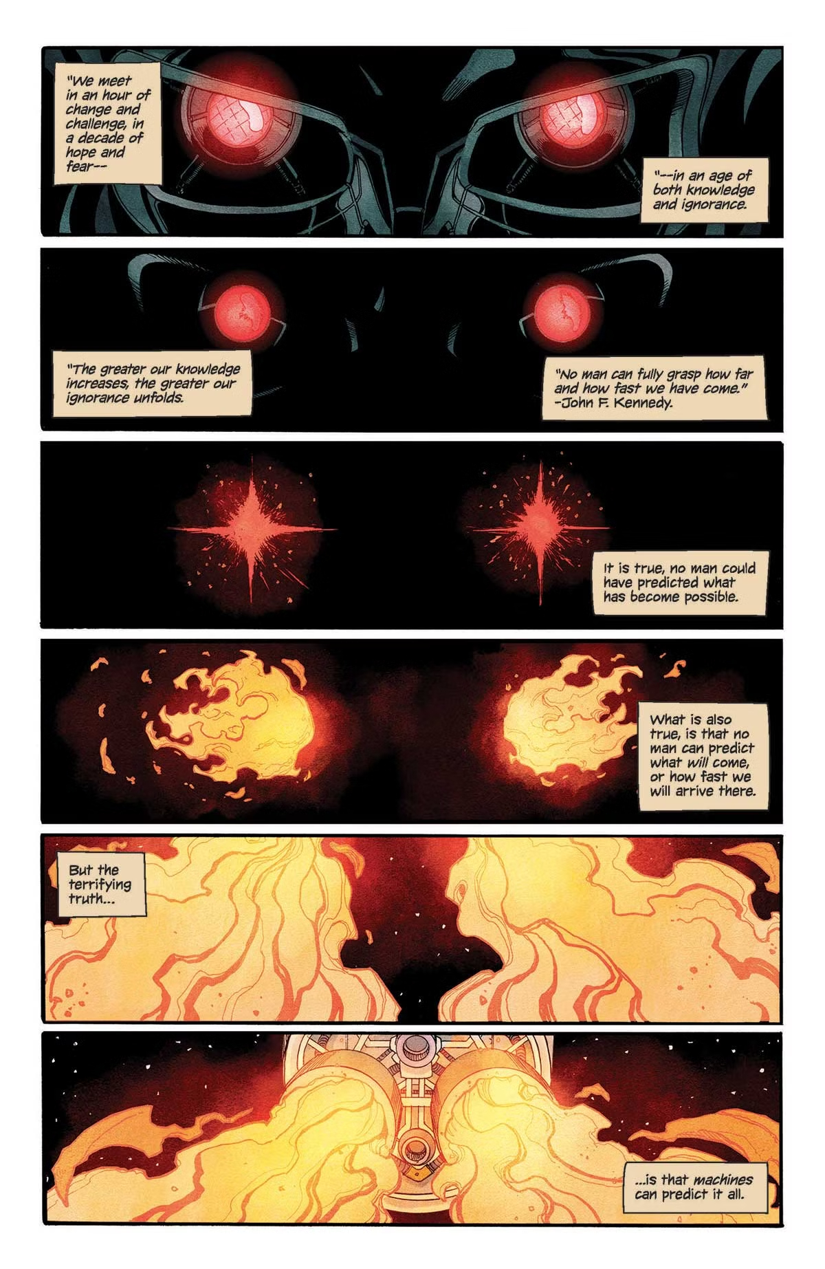 На этой неделе вышел финальный выпуск ограниченной серии The Terminator от издательства Dynamite Entertainment. По сюжетной завязке в нём Скайнет не собирается сдаваться в своих попытках уничтожить человечество. Не вышло с убийством Сары и Джона Конноров? Можно заняться и другими членами Сопротивления. И для этого взбесившийся ИИ отправляет терминаторов в самые разные времена.