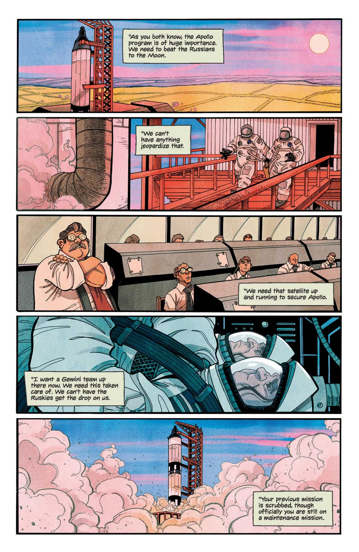 В The Terminator #5 одного из механических засланцев закинут в 1960-е годы, разгар Холодной войны. Космическая гонка двух сверхдержав накаляется. И у киборга-безбилетника есть миссия… даже если для этого надо попасть в открытый космос.