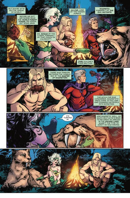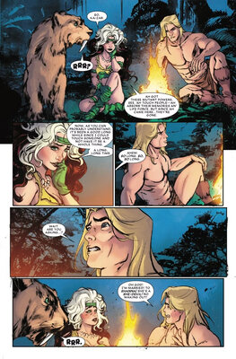 На страницах видно, как Шельма пытается выступать в роли миротворца — флиртует и намекает Ка-Зару на дружбу организмами, ведь в это время она временно лишилась своих способностей поглощать силы и воспоминания у живых существ. Из-за которых она большую часть своей жизни не могла касаться других людей. Можно понять, почему она решила использовать эту возможность. Но блондинистый клон Тарзана проявляет моральную стойкость, ведь он женатый человек.