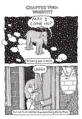 Мы же, с ужасом глядя на показанные страницы, можем сказать, что некоторые ребятишки поседеют после прочтения комикса. Там же натуральный ужас со змеями в виде диалоговых пузырей, хищно выползающими изо рта страшной девочки. А козлик воистину инфернален. Есть подозрение, что остальные члены семьи также не подведут. Графический роман для детей получился на славу, напугаются все.