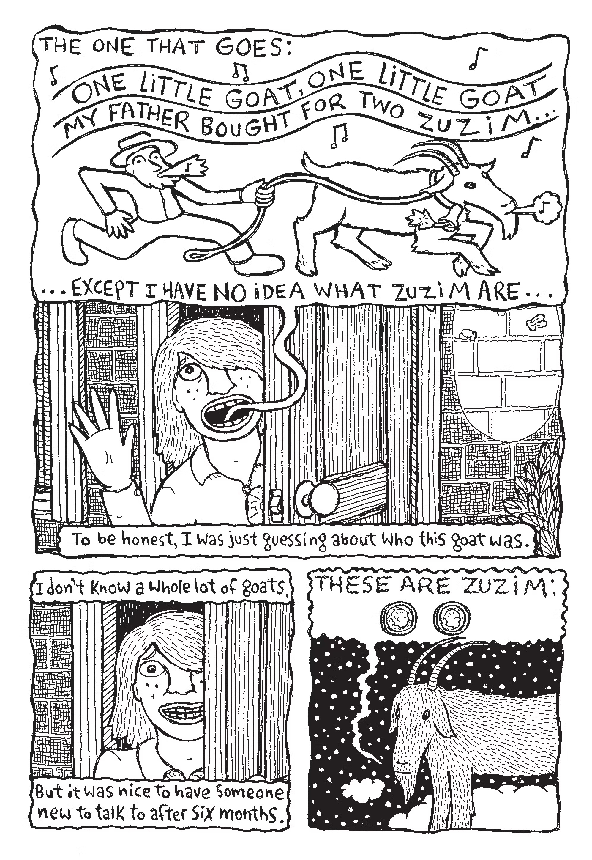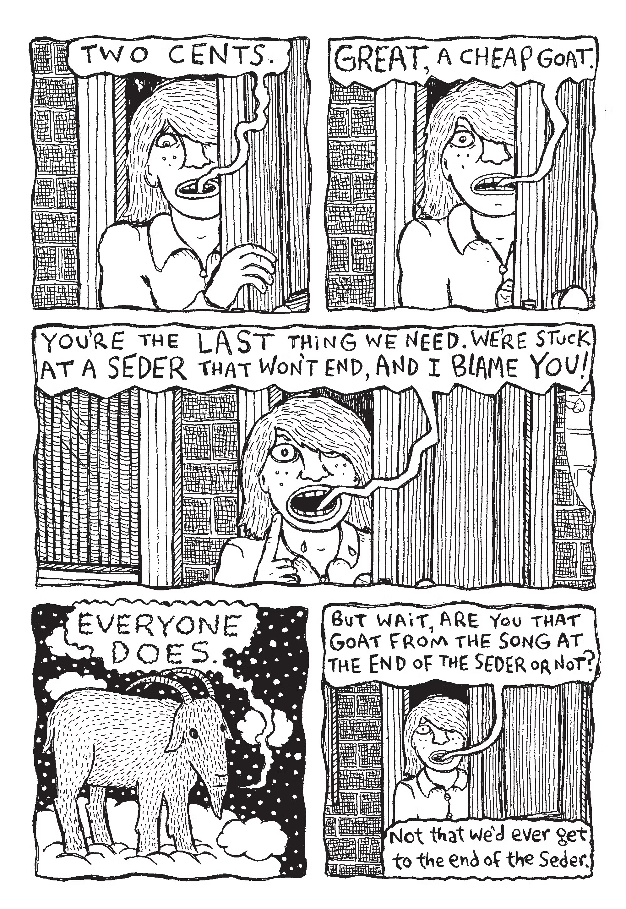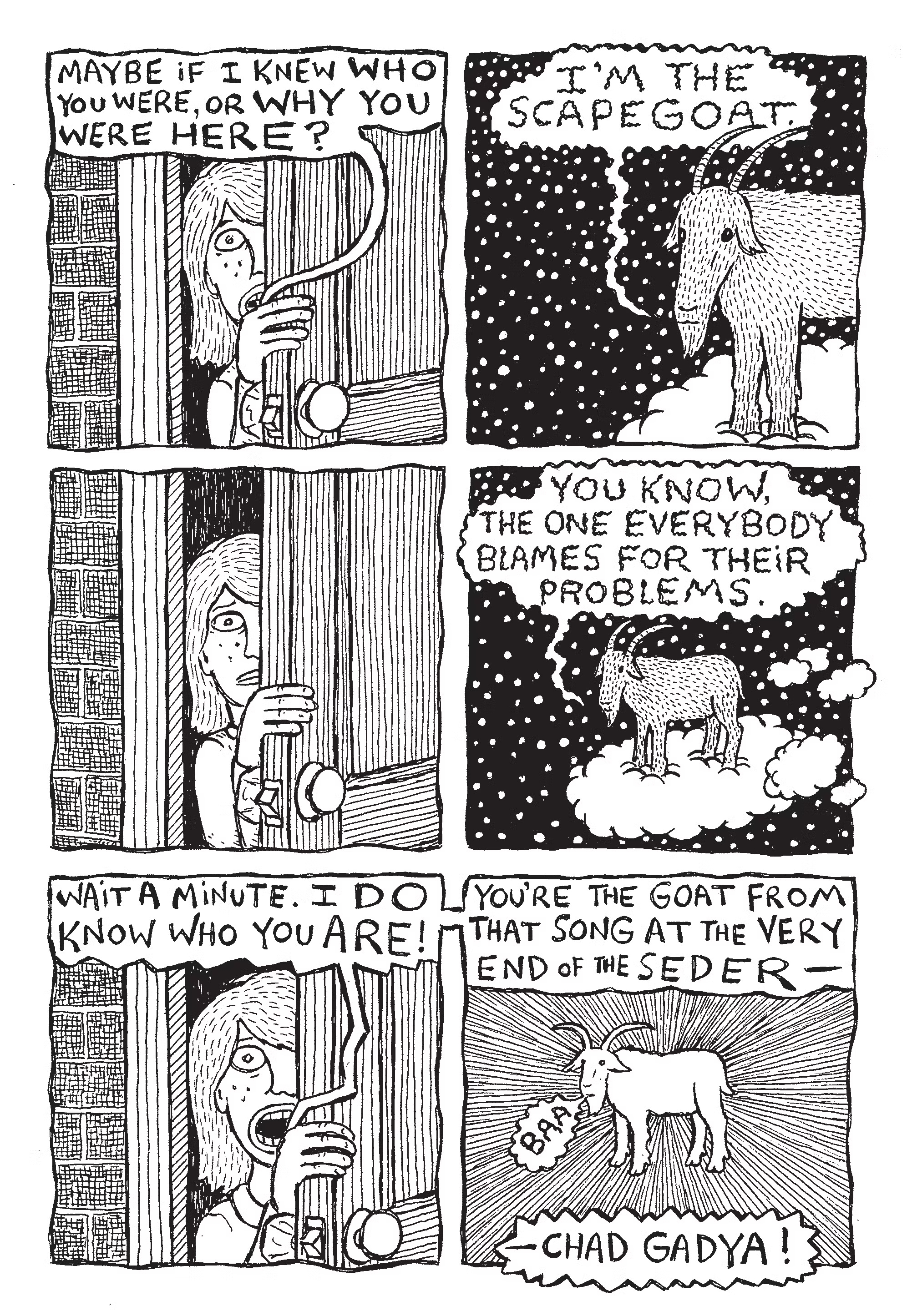 Сценаристка Дара Хорн получила три Национальные еврейские книжные премии, а теперь выпустила свой первый графический роман One Little Goat(«Один маленький козлёнок»), нарисованный Тео Эллсвортом (Treasury of Mini Comics, Uglydoll). В сеть также выложили отрывок из этого комикса для детей среднего школьного возраста на пасхальную тематику.