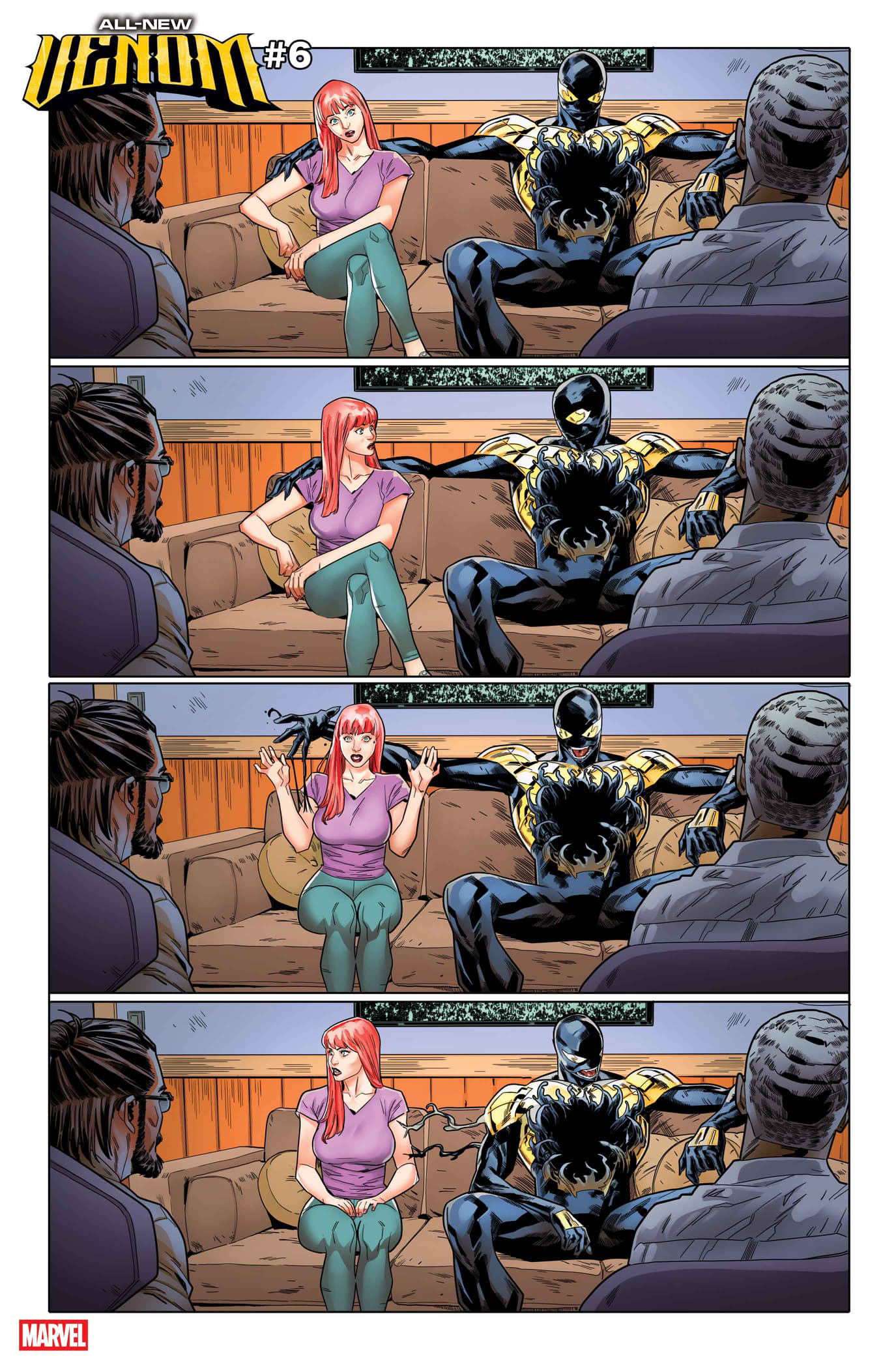 В грядущем шестом выпуске серии Юинг и художник Карлос Гомес (Red Sonja) объяснят, как рыжая красотка и симбиот слились в таком союзе. И всё это они будут рассказывать журналисту Робби Робетсону (один из давних «паучьих» персонажей) и Полу Рабину (именно к нему Мэри и ушла от Питера).