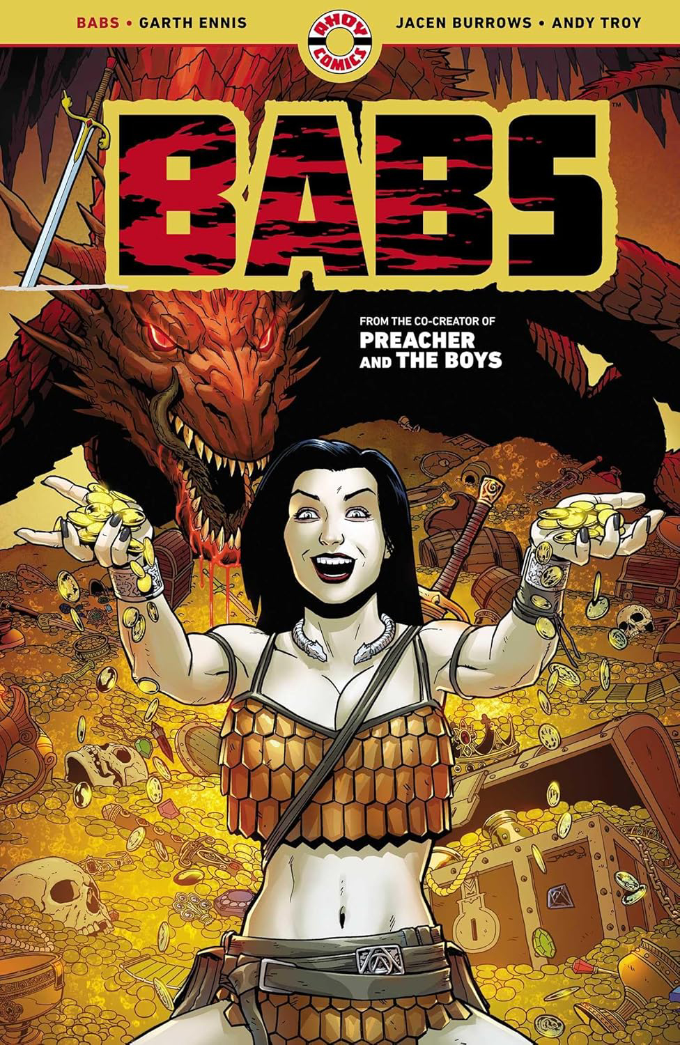 Мы несколько раз писали про фэнтези-комикс BABS от ирландского чернушника-сценариста Гарта Энниса («Пацаны», «Проповедник», Punisher MAX). Так как это была мини-серия всего на пять выпусков, то издательство AHOY Comics выпустит её в формате TPB (trade paperback) — сборника в мягкой обложке.