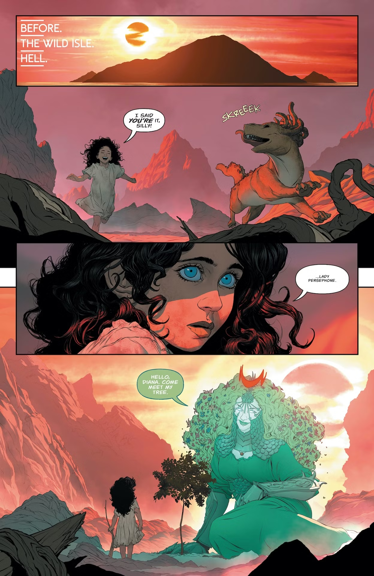 Сегодня издательство DC Comics также выпустит свежий номер Absolute Wonder Woman. Выпуск является продолжением сюжета из предыдущего, когда «абсолютная» Чудо-женщина попала в подземный мир. И на представленных ниже страницах нам также показали Персефону, жену Аида. Который, по традиции, как раз заправляет этим местом. Ну а в настоящем взрослая Диана сражается с той самой легендарной Химерой из греческой мифологии.