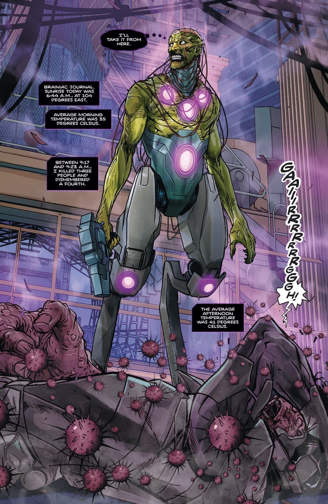 На этой неделе в продажу поступит свежий выпуск комикса Absolute Superman. В седьмом номере сценарист Джейсон Аарон (Wolverine, Teenage Mutant Ninja Turtles) и художник Кармайн Ди Джандоменико (The Flash, Orfani) наглядно покажут нам злодея Брейниака во всей его красе.