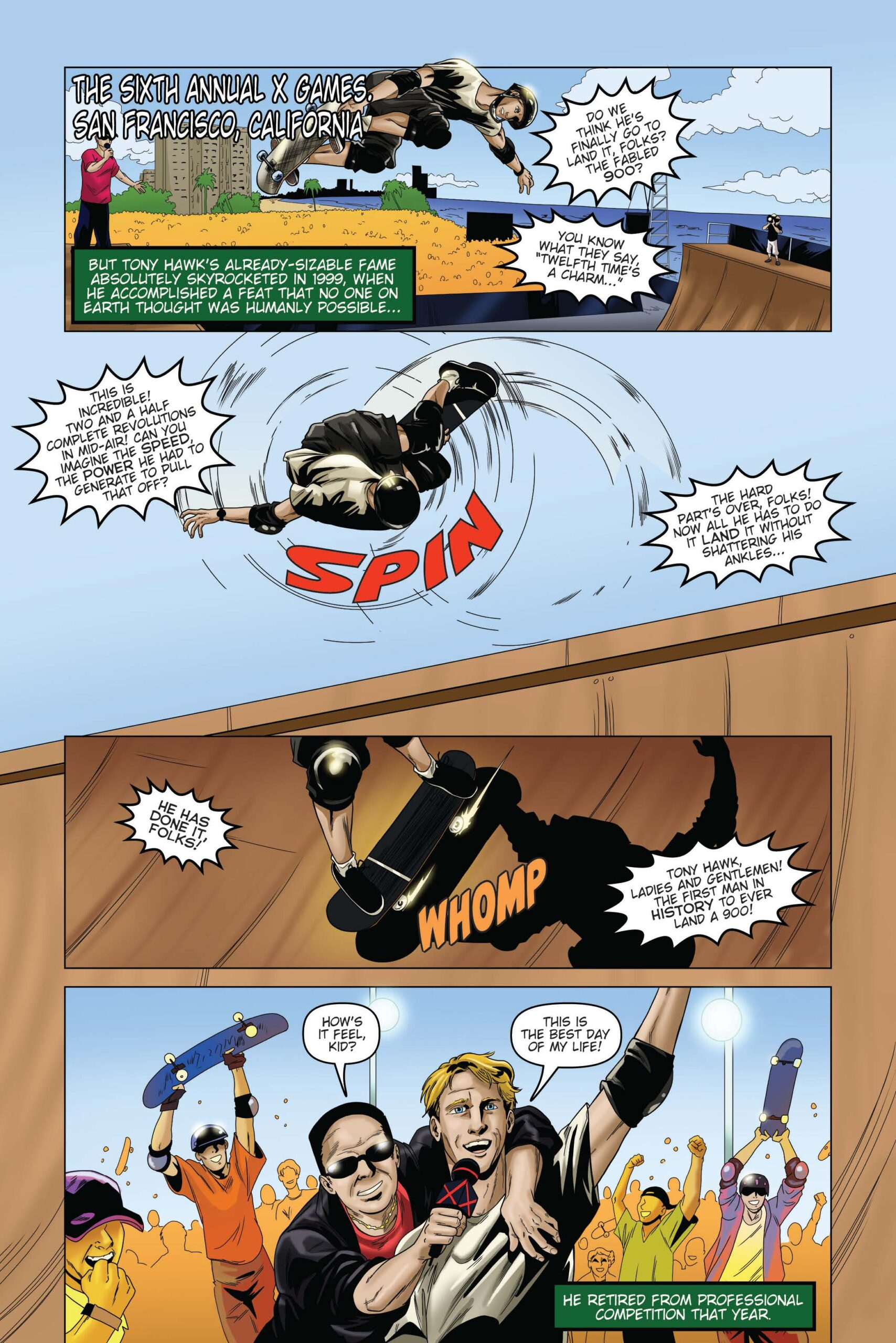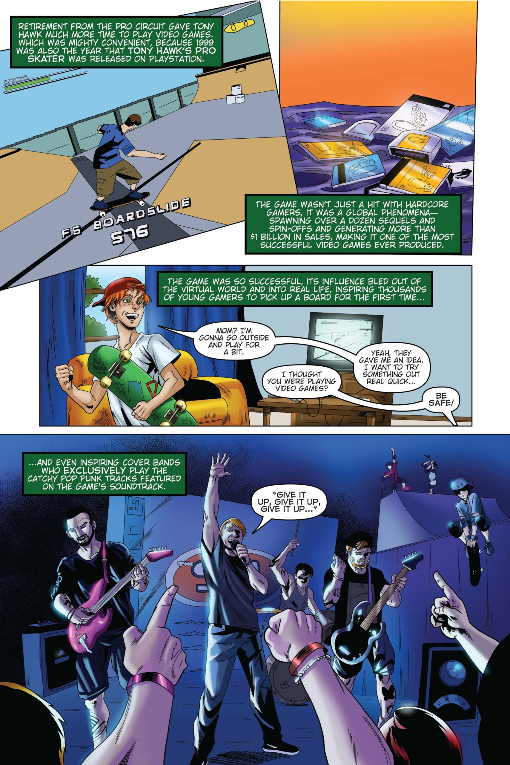Объём комикс составит всего лишь жалкие 22 страницы, как это заведено у TidalWave. Зато тут показали легендарное выполнение Хоуком сложного трюка «900» в 1999 году, а также как игры про него повлияли на ребятишек и популярность некоторых музыкальных коллективов в конце 1990-х и начале 2000-х годов. Написал ваншот Эрик М. Эскивель (Legend of Oz: The Wicked West), а проиллюстрировал Диего Магно.