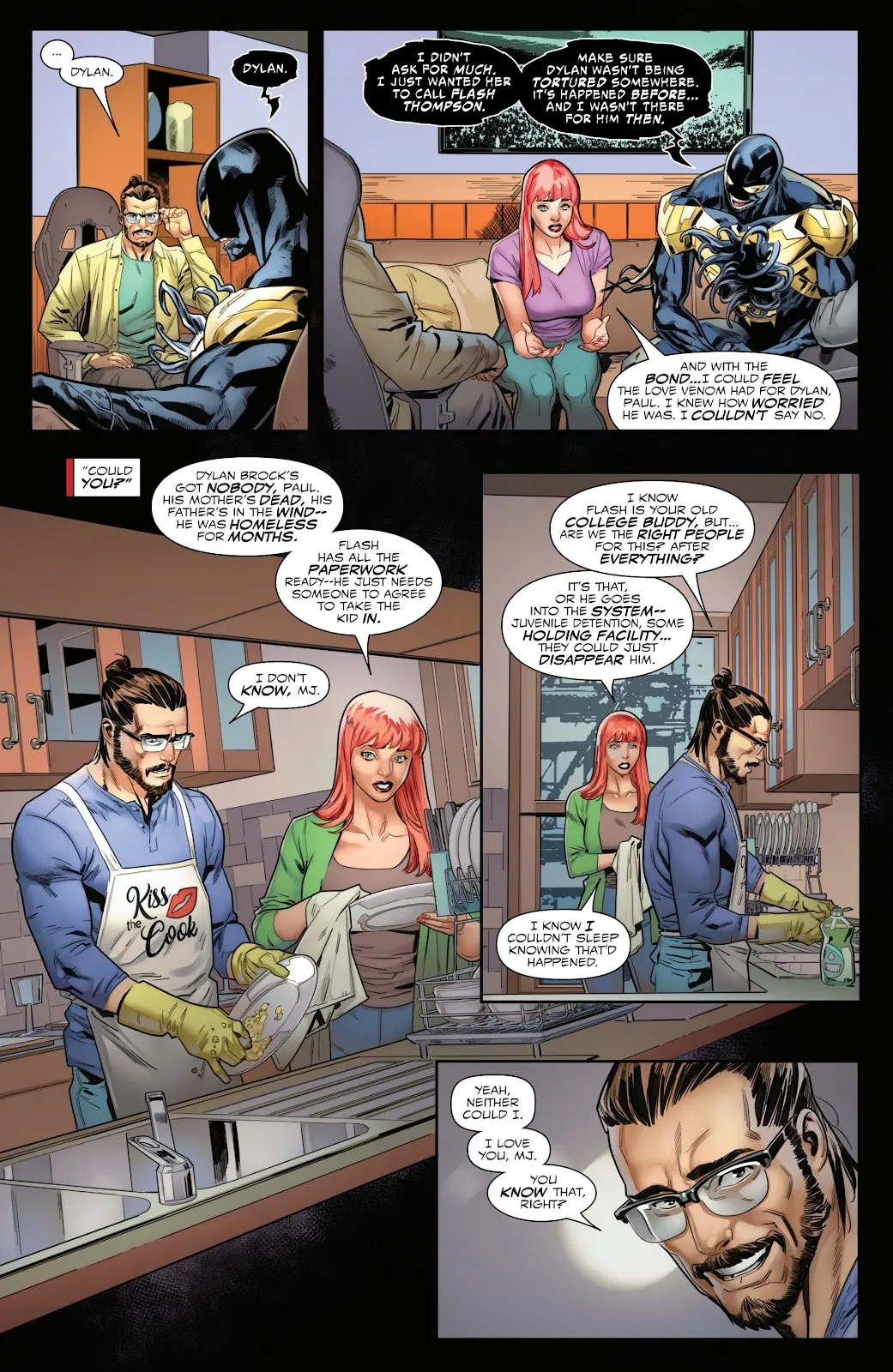 Зато ещё стало понятно зачем Мэри и Пол приглядывают за Дилланом Броком — сыном Эдди. Вы не поверите, но об этом попросил сам симбиот, так как он искренне привязан к пацану и не хочет, чтобы с ним случилось что-то плохое. Не отдавать же его в детдом или неподходящую приёмную семью. Поэтому бывшая модель аккуратно уговорила своего парня стать опекунами.