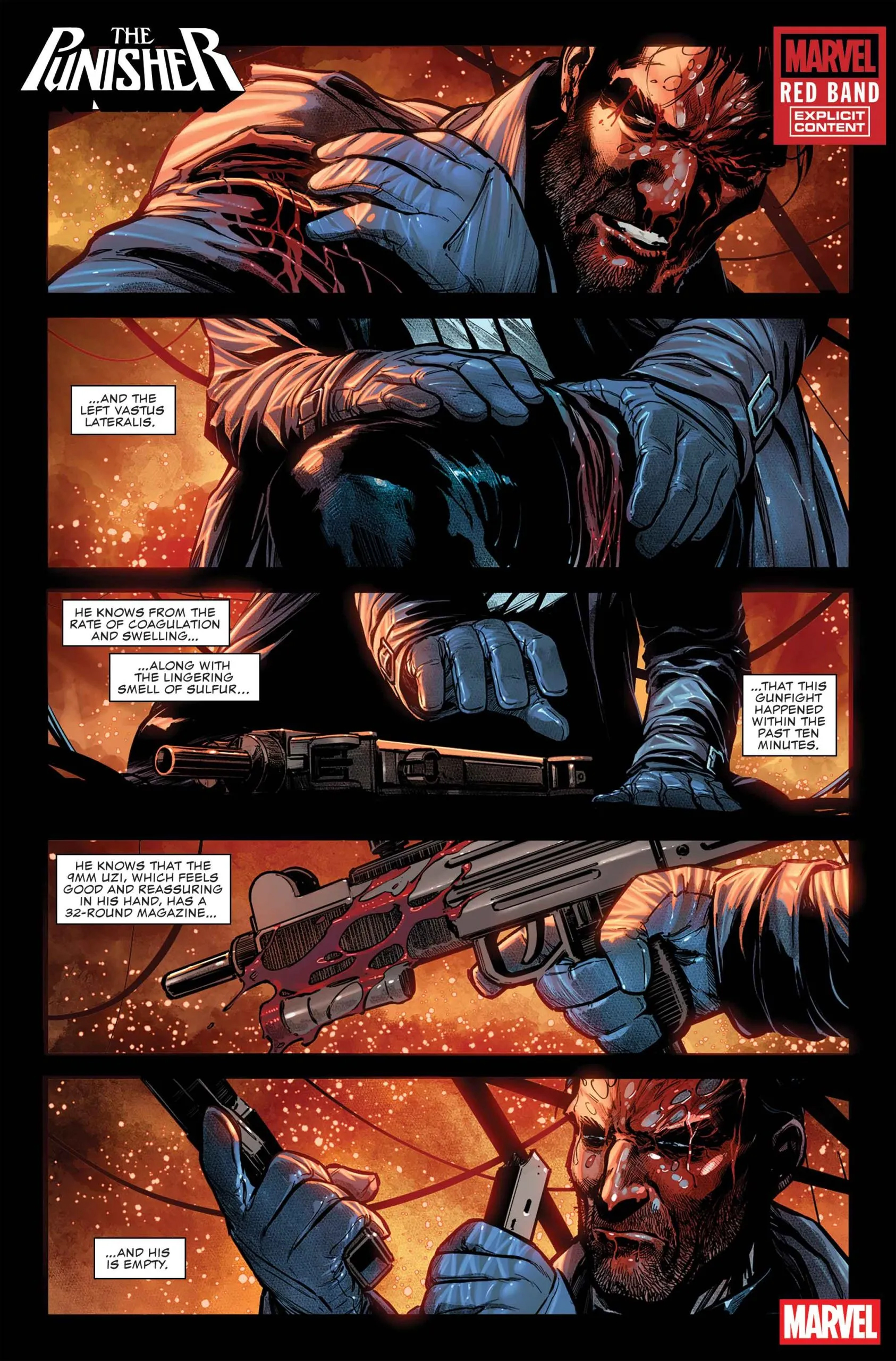 Marvel Comics решило порадовать фанатов Карателя новой серией комиксов под лейблом Red Band. То есть особенно жестоких и с обилием красной телесной жидкости. Создатели обещают, что это будет самое брутальное и кровавое воплощение Фрэнка Касла за всю историю персонажа. Видимо, издатель решил, что пора вернуться к истокам и дать читателям то, чего они так жаждут — побольше «уличного безумия» и «волосатых психопатов». То бишь приземлённости. Похоже, новый футуристический Каратель не зашёл вообще никому. Что даже не удивительно. Свежая серия будет называться Punisher: Red Band.