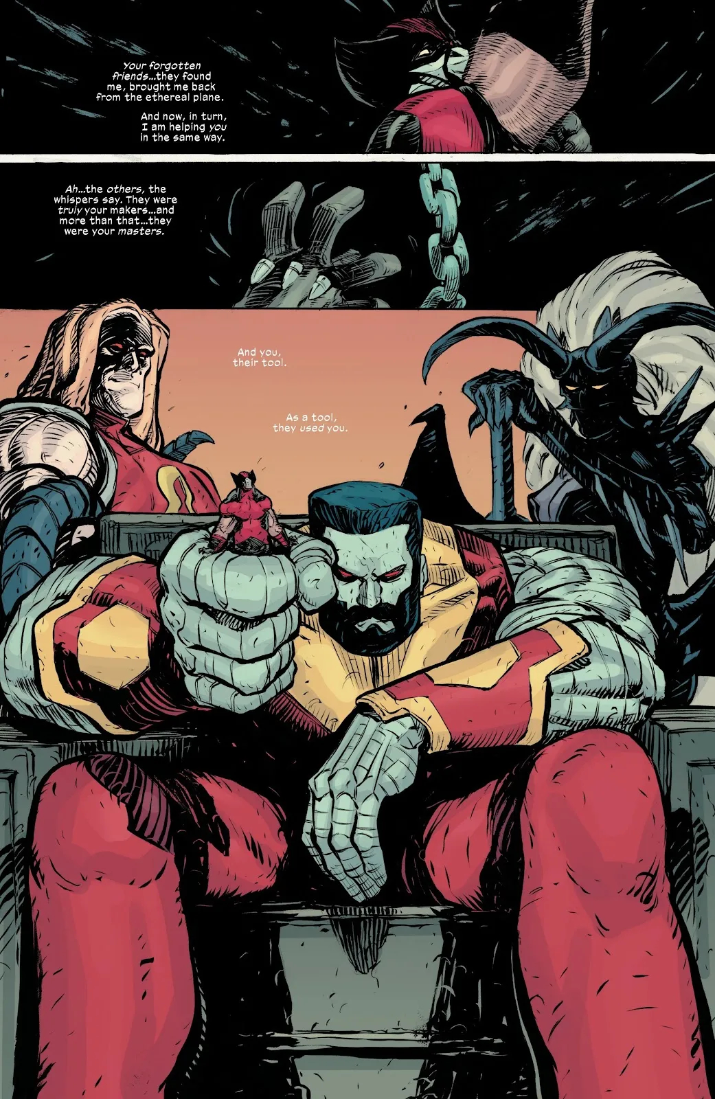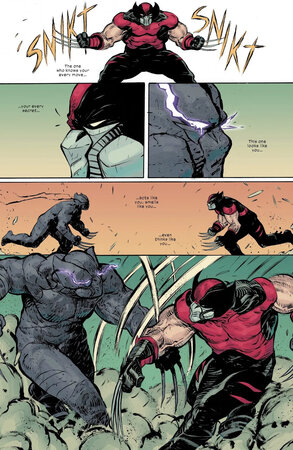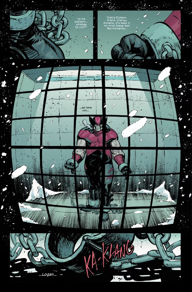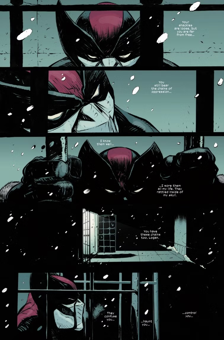 Логан, благодаря помощи Легиона, встречает образы своих пленителей — Коллоса, Магику и Красного Омегу — и сражается с ними. Одновременно с этим Дэвид даёт экспозицию о прошлом Росомахи. Например, именно Создатель (злая версия Рида Ричардса из Фантастической четвёрки) и трио выше привили нашему когтистому герою адамантий.
