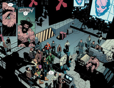 На протяжении всего номера Логан (носящий тут ещё прозвище Зимнего солдата) путешествует по своему разрушенному сознанию. И в этом ему помогает Дэвид Хэллер — мутант-псионик. В оригинальном комикс-каноне Marvel он также шизофреник и сын Чарльза Ксавьера, Профессора Икс. И да, сериал «Легион» сняли про него. Здесь, как мы выясняем, у него нет физического тела… что не мешает ему продолжать существовать в ментальной сфере бытия. При этом он сам обитает в компьютере.