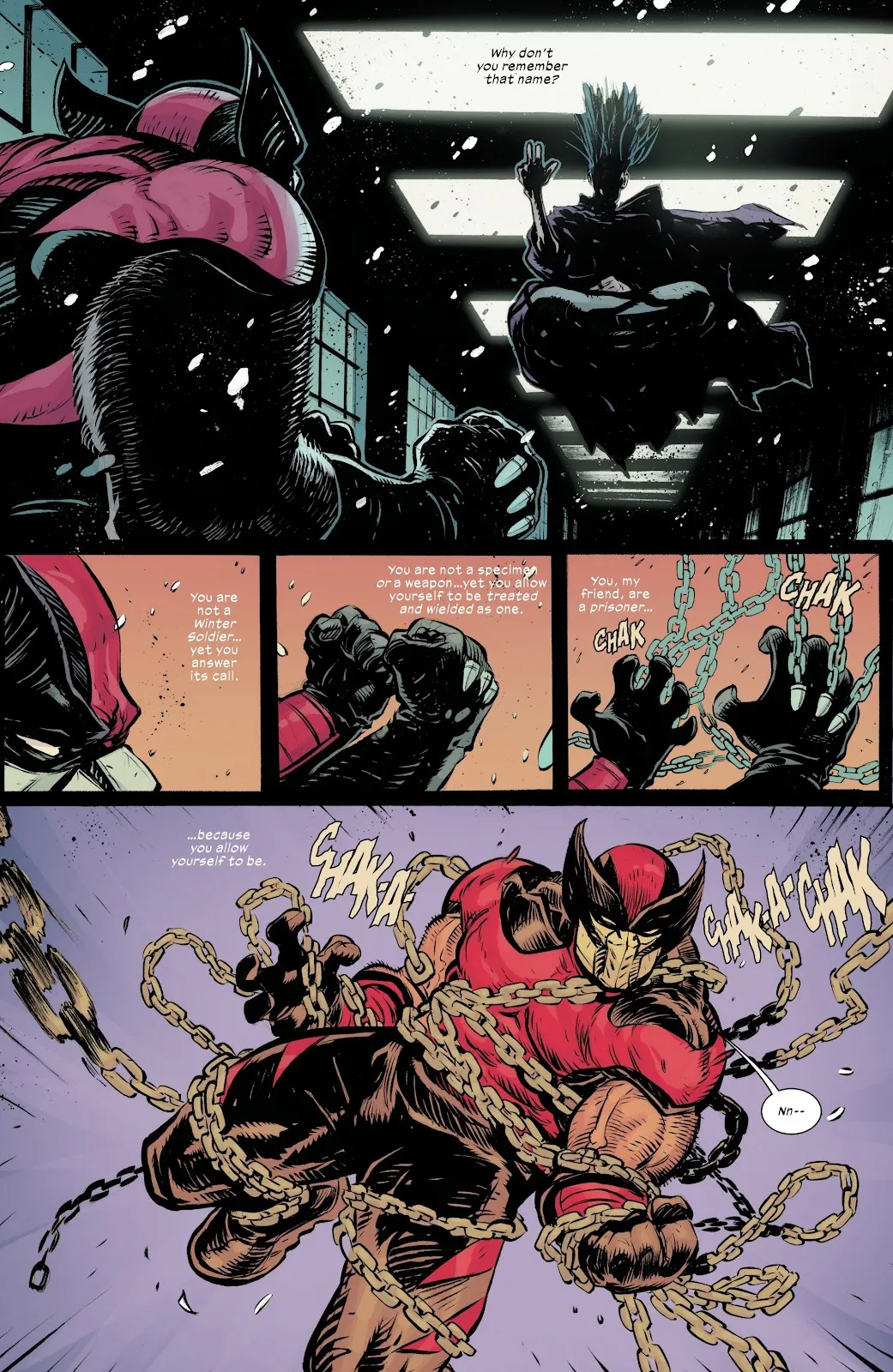 Приглашённый художник Алекс Линс (Namor) отправляет Росомаху в психоделическое путешествие по его сознанию, пока знакомые и незнакомые лица Оппозиции пытаются «распутать» программу «Зимнего солдата» Логана!