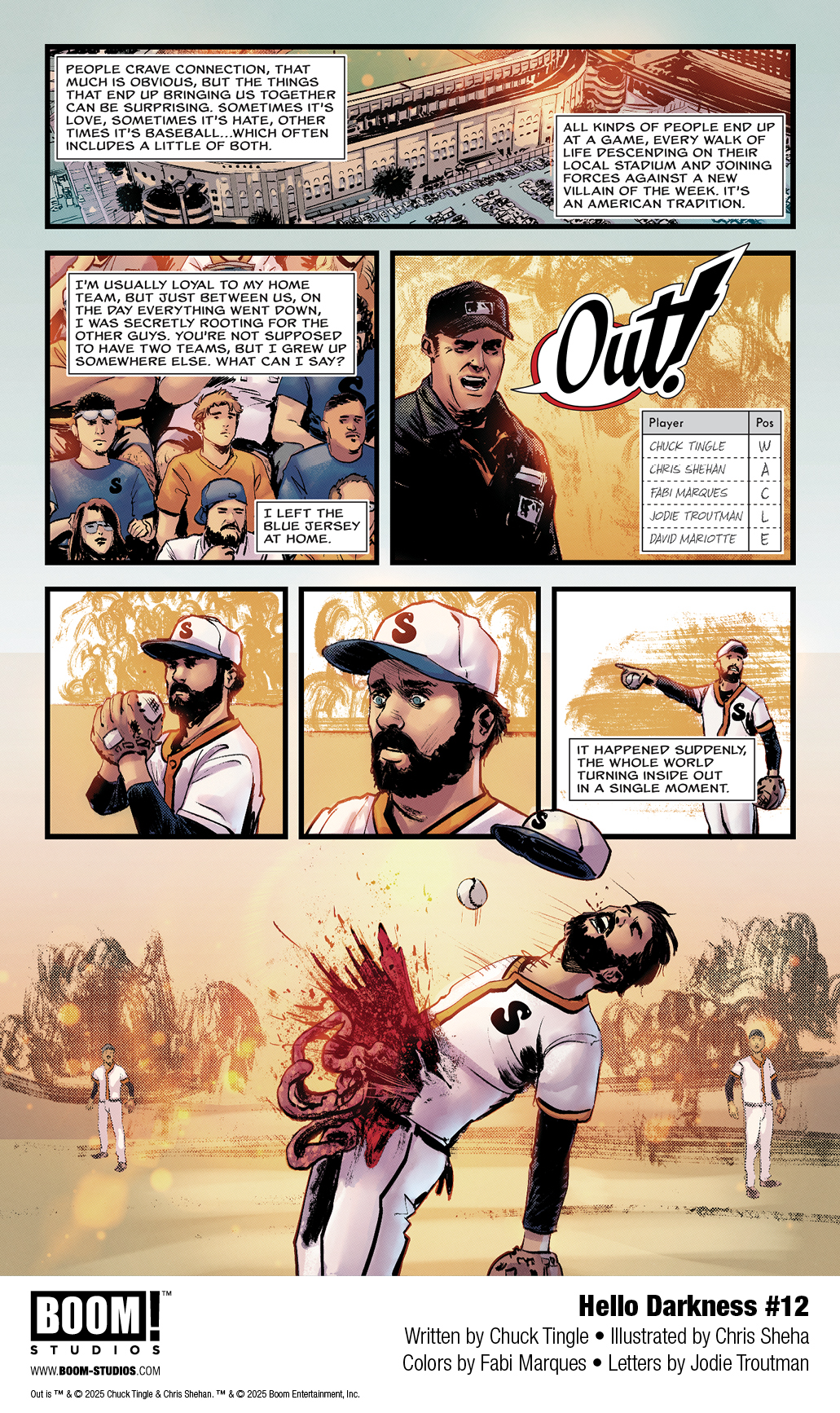 Издательство BOOM! Studios показало двенадцатый выпуск хоррор-антологии Hello Darkness. Этот номер станет дебютом Чака Тингла, автора бестселлеров по версии USA Today и лауреата премии Хьюго. Вместе с художником Крисом Шиханом они презентуют короткую историю Out («Выход»).