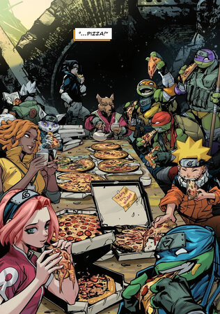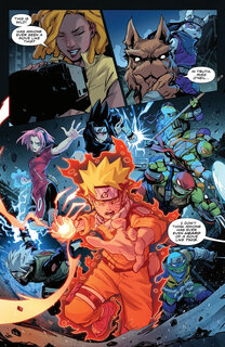 Так как этот кроссовер стал финансово успешным, то авторы оставили лазейку фразой Какаши насчёт того, что он до сих пор ощущает чакру Шреддера, хоть это и может быть остаточным эффектом от мутагена. Очень удобно, сами понимаете. Ну и на последней странице все положительные герои уплетают пиццу.