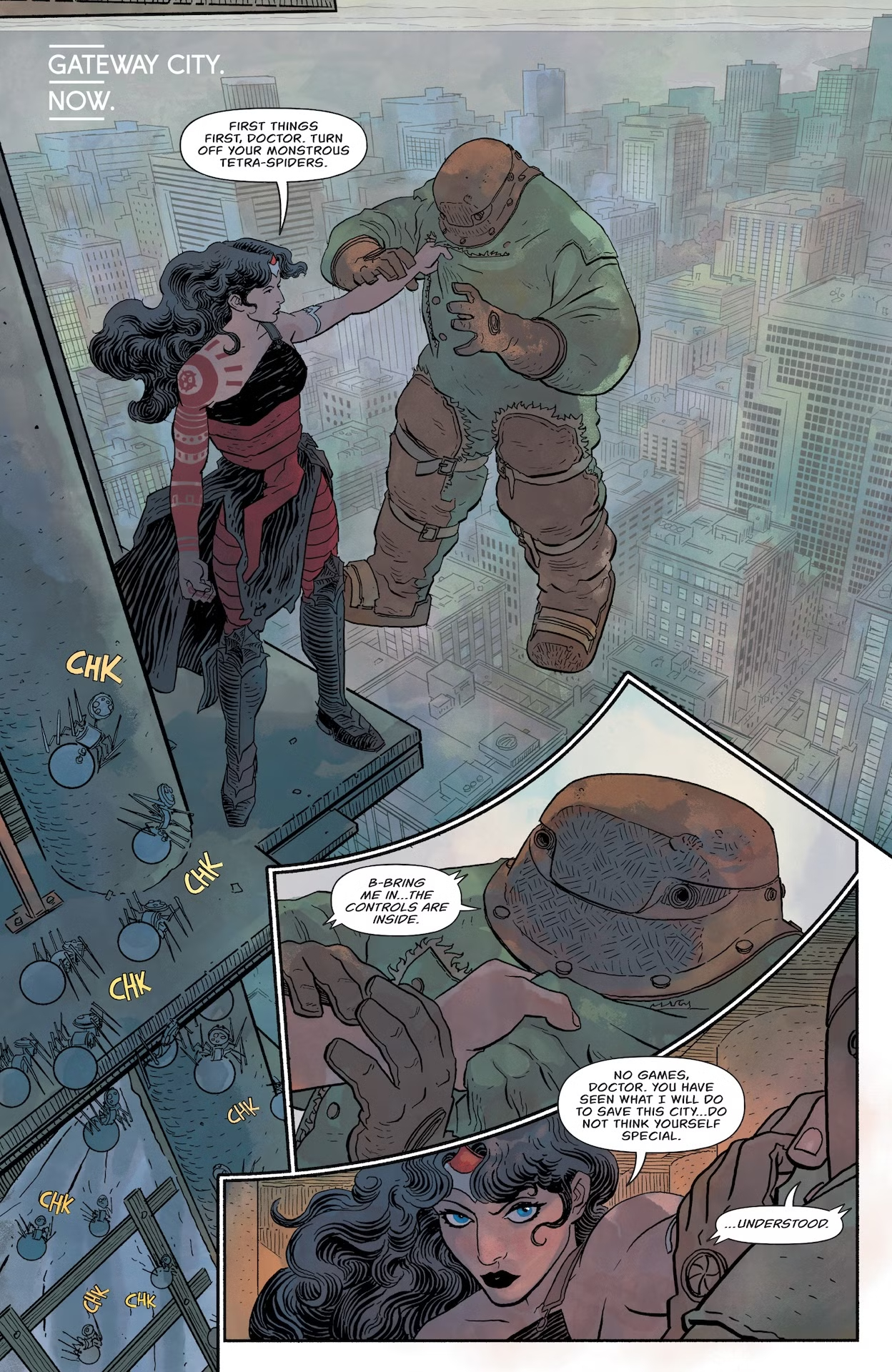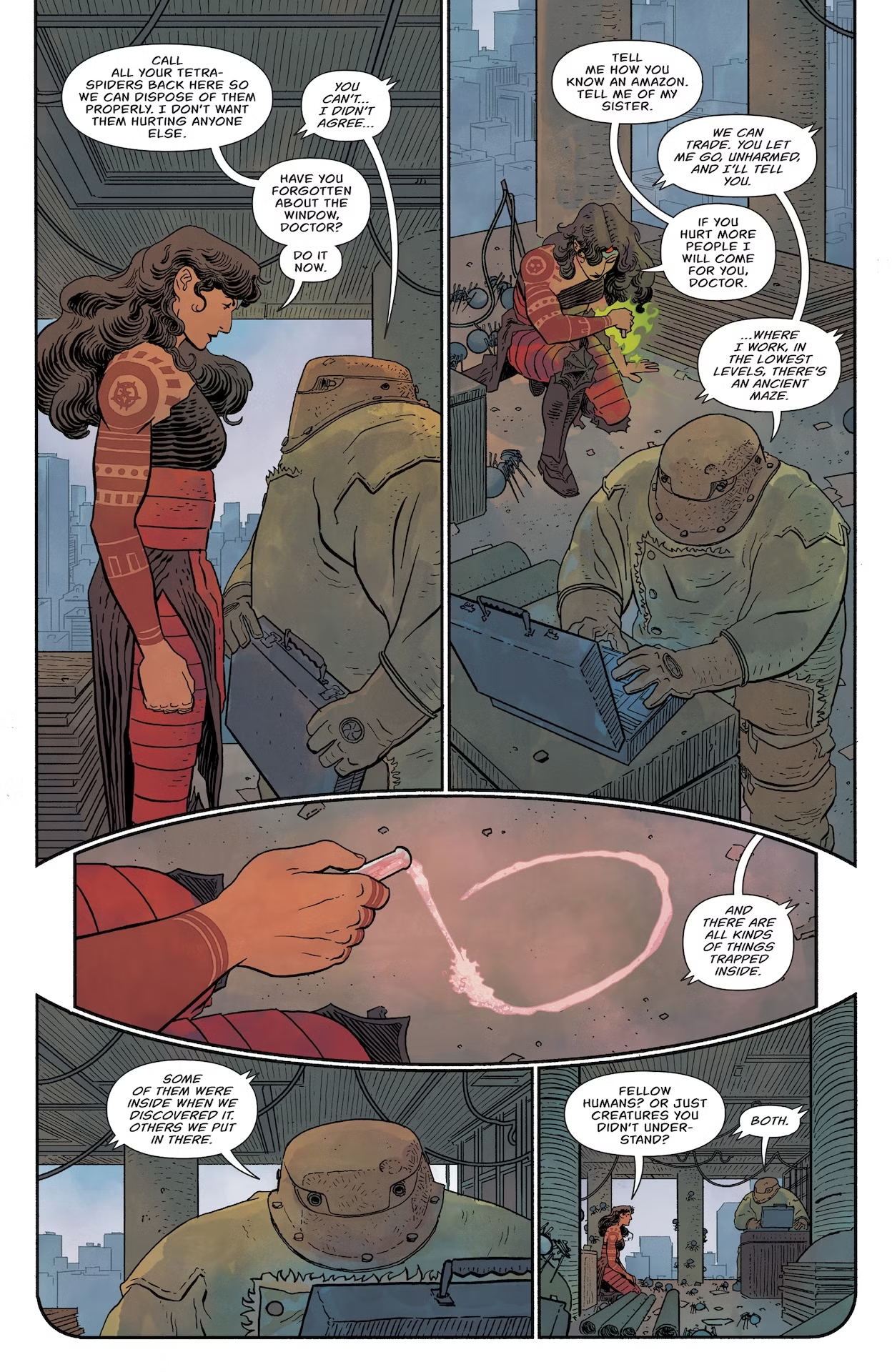 На этой неделе вышел свежий, уже девятый выпуск серии Absolute Wonder Woman от DC Comics. В прошлом номере нам показали двух переосмысленных злодеек вселенной, причём одна из них по прозвищу Доктор Яд была в самых первых комиксах о нашей воинственной амазонке. И на представленных страницах «абсолютная» Диана не хочет общаться с нею уважительно. А не надо напускать роботов-пауков в город.