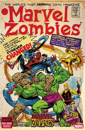 Иронично, что зомби от Marvel Comics живее всех живых. И теперь появился свежий, пахнущий кровищей и мозгами, анонс новой особо отвратительной серии — Marvel Zombies: Red Band. Судя по названию, решили совсем уже максимально оторваться. Историю из пяти выпусков пишут Итан С. Паркер (Hello Darkness) и Гриффин Шеридан (Hello Darkness, Kill Your Darlings), а иллюстрирует Ян Базалдуа (The Immortal Thor, Bellas De Noche). Издательство подмигивает и обещает издавать серию со специальным предупреждением в непрозрачных упаковках. Мол, крови и кишок будет столько, что только держись. А вот обнажёнку наверняка не завезут.