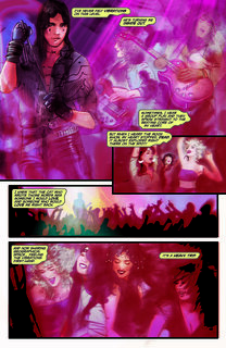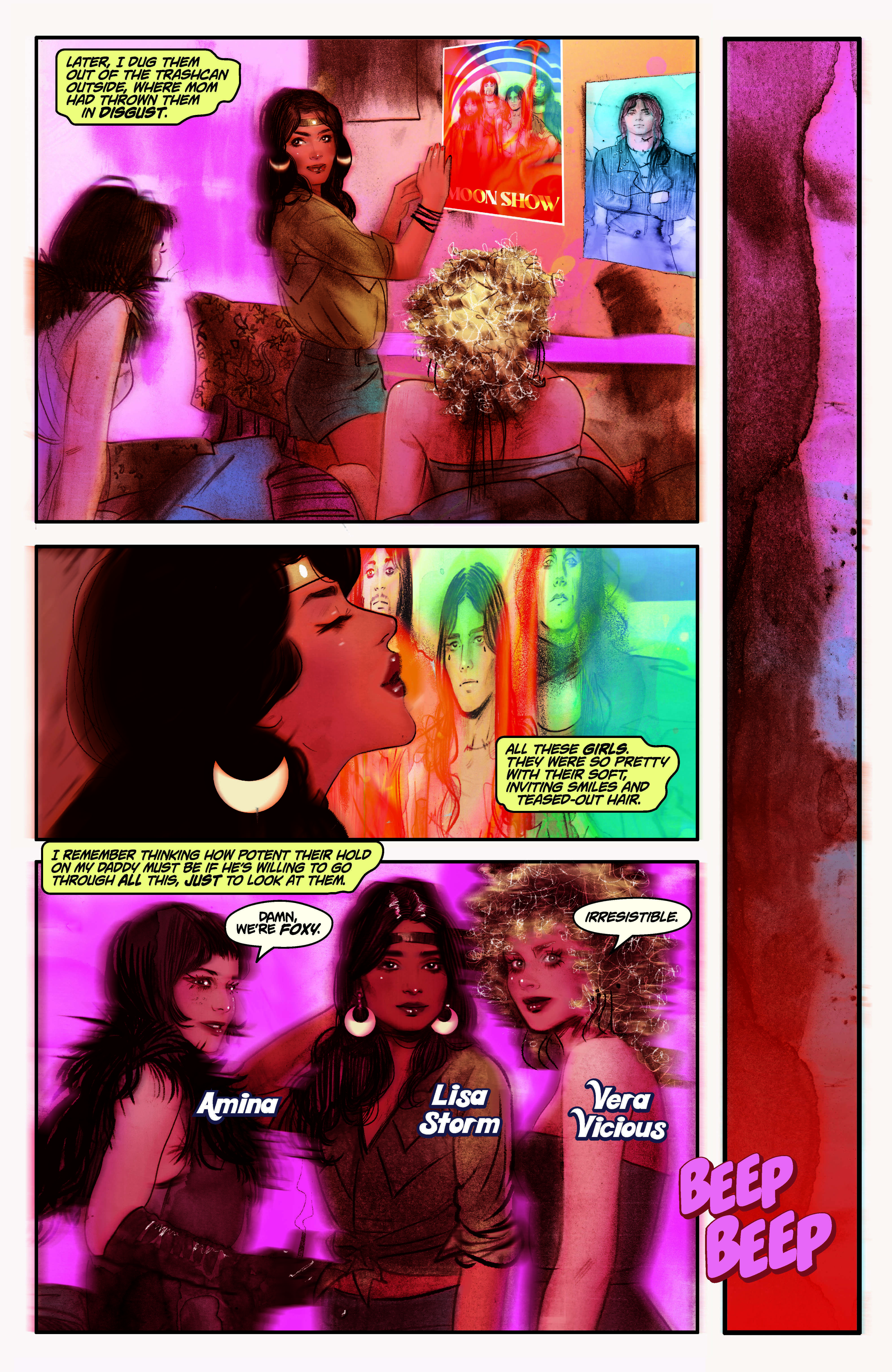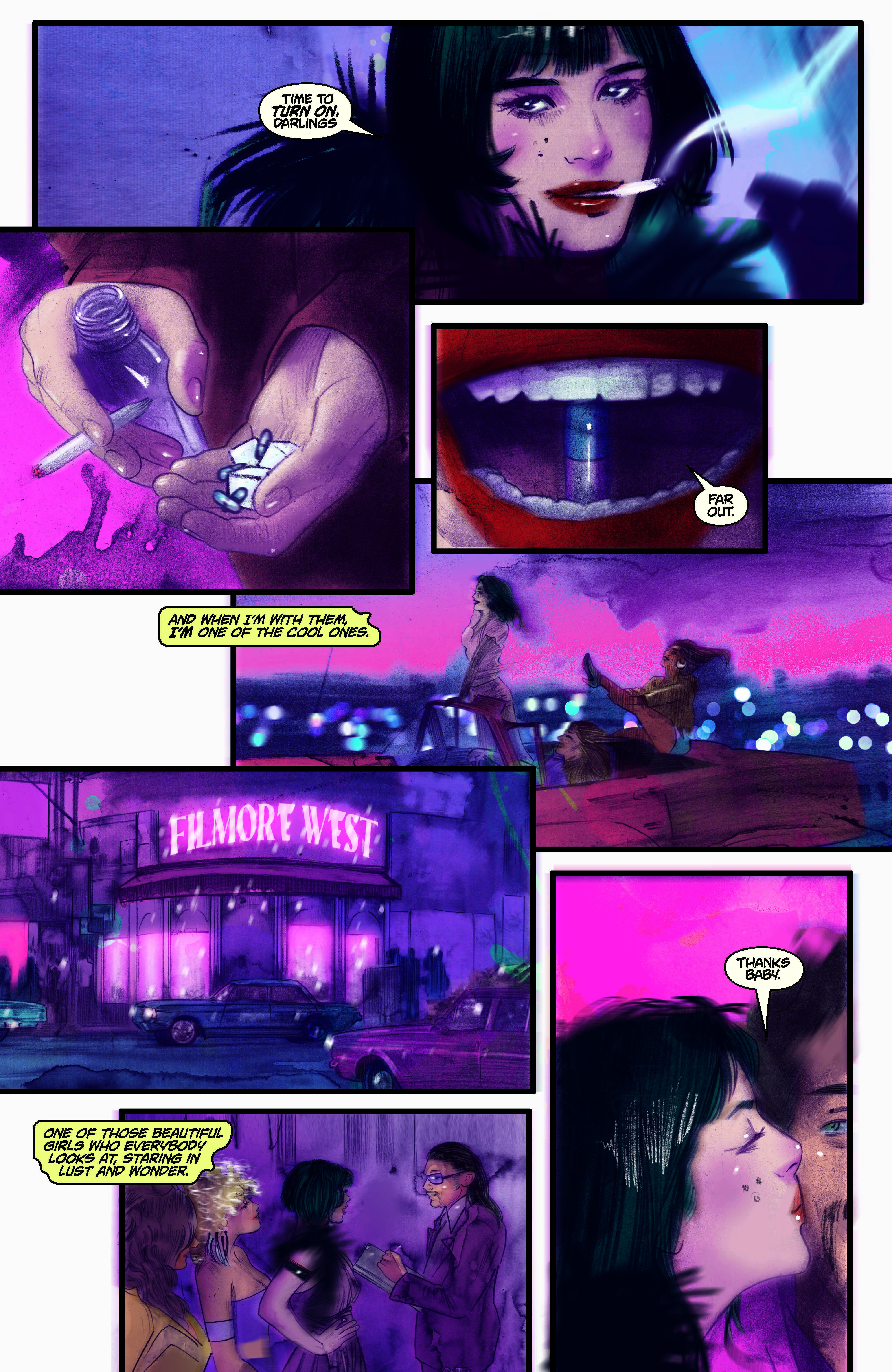 Пишут, что, если вы прётесь от «Суспирии», «Ночей в стиле буги» и фильма «Почти знаменит» то вам понравится. А уж если вы девушка и мечтали когда-то сбежать с любой рок-группой в отвязное приключение — этот сюрреалистический коктейль из грёз и кошмаров определённо для вас. Такое вот предложение от создателей. А на страницах — весьма симпатичные барышни и кого-то успели зарезать.