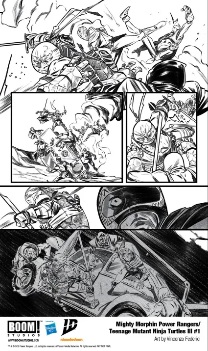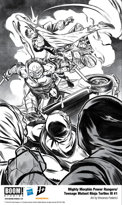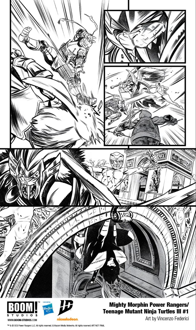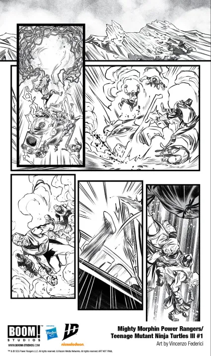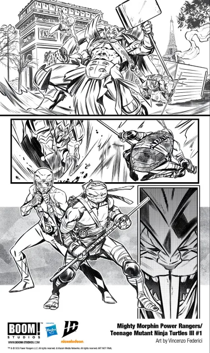 В мире комиксов существует множество крутых кроссоверов, но объединение «Могучих Рейнджеров» и «Черепашек-ниндзя» от BOOM! Studios — это просто мощнейший заряд крутости для фанатов обоих франчайзов. После двух совместных приключений обе команды скоро встретятся в третий раз. Появились первые странички — пока без цвета, но зато с кучей обложек.