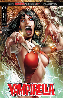 На этой неделе в продаже появился третий выпуск седьмого тома оногинга Vampirella от Dynamite Entertainment. Сюжетом выпуска заведовал сценарист Кристофер Прист (Black Panther, Deathstroke, Quantum & Woody, Conan The Barbarian), а рисунком — Эргюн Гюндюз (Draculina, Vampirella, Sacred Six). Ну а издатель также показал пару страниц и обложек к комиксу.