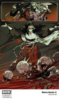 Первый выпуск Marian Heretic намечен на 1 октября. Он будет доступен с основной обложкой от художника комикса Джо Джаро (Buffy the Last Vampire Slayer), а также с вариантами от Дилана Бернетта, Дженни Фрисон и Суспирии Вильчес.