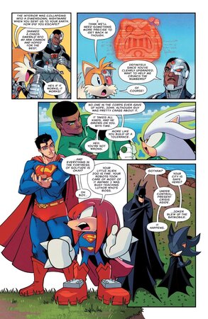 Мы как-то писали, что в третьем выпуске грандиозного кросовера DC x Sonic The Hedgehog пушистая братия во главе с ёжиком Соником взяла и заменила всю Лигу Справедливости. За прошедшие выпуски герои зря времени и не теряли и уже скоро грядёт финальная битва в пятом выпуске. Похоже, что DC Comics и SEGA решили оторваться по максимуму.