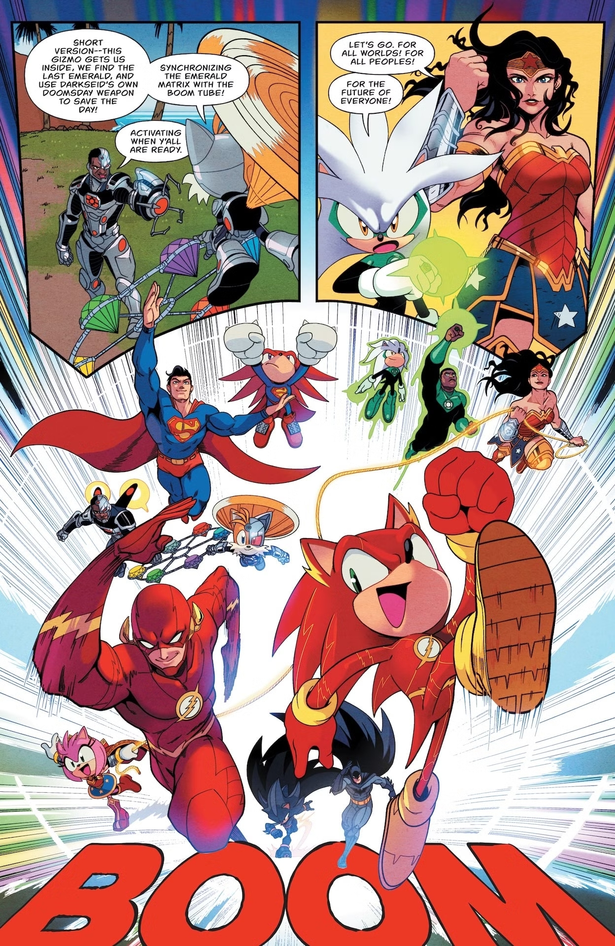 Битва обещает быть поистине грандиозной. Вся скорость Соника при поддержке Лиги Справедливости в полном составе. Конечно, остальная пушистая братия тоже не будет бить баклуши. Дарксайд не так прост, а изумруды Хаоса дадут ему поистине абсолютную мощь. Так что каждый из причастных станет сражаться на грани своих возможностей.