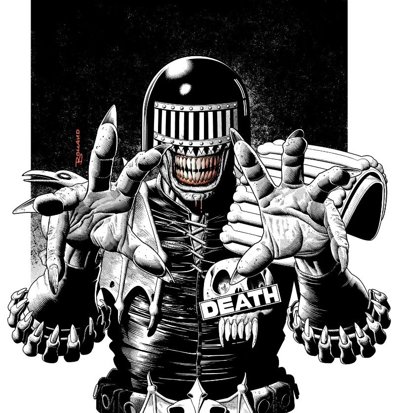 В честь этого выпустят специальный 48-страничный The Judge Death Mega-Special. Причём там появятся и остальные Тёмные Судьи, что сеют хаос по всей вселенной. Каждый из них получит свою историю в этом спецвыпуске. Новое изображение Смерти предоставил знаменитый Брайан Болланд, соавтор злодея.