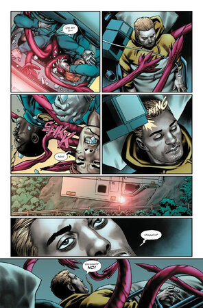 На представленных страницах нам показывают, что тентакли (щупальца, если по-русски) Карнажа могут пугать наравне со своими японскими «коллегами», если вы хоть раз видели их в аниме или манге. Обложки к выпуску нарисовали Саис, Дж. Скотт Кэмпбелл, Майкл Уолш и Иван Шаврин. Последний как раз нарисовал тот кавер, где красный симбиот грубо вылезает из тела Эдди.