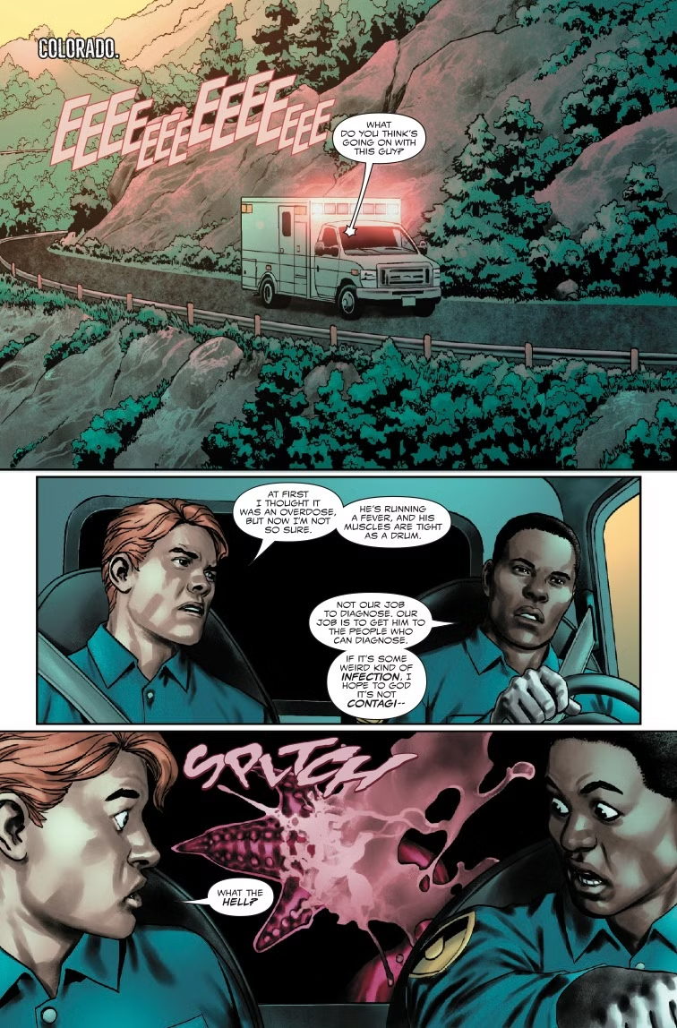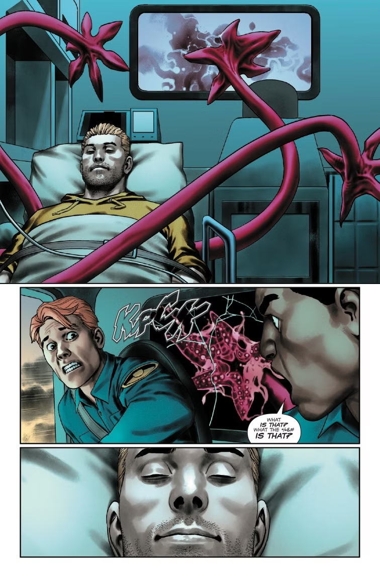 На представленных страницах нам показывают, что тентакли (щупальца, если по-русски) Карнажа могут пугать наравне со своими японскими «коллегами», если вы хоть раз видели их в аниме или манге. Обложки к выпуску нарисовали Саис, Дж. Скотт Кэмпбелл, Майкл Уолш и Иван Шаврин. Последний как раз нарисовал тот кавер, где красный симбиот грубо вылезает из тела Эдди.