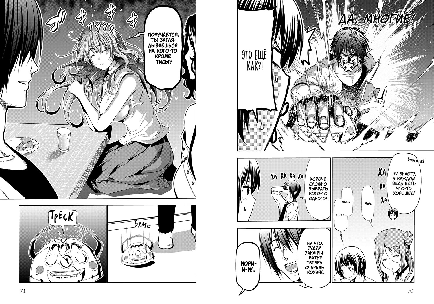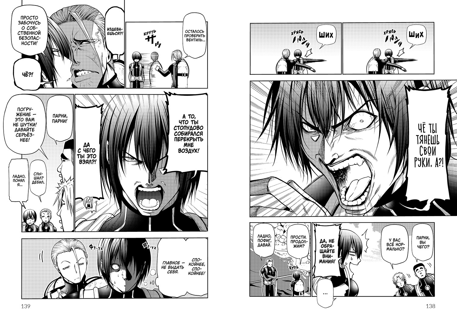 Впрочем, большой сквозной сюжет в книге тоже есть, но даже он скорее помогает обособить историю от прошлых томов, а не наоборот. Иори, видите ли, выигрывает неплохую такую сумму в лотерею и тратит деньги на то, чтобы свозить Чису на Окинаву — как он когда-то и обещал. Кохэй и Страшилка не могут позволить дуэту остаться наедине в столь романтической ситуации (ну, Страшилка не может — Кохэй просто помогает подруге) и бросаются в погоню — следить и незаметно портить атмосферу. А дальше, сами понимаете, с этим ограниченным составом персонажей начинает приключаться ВСЯКОЕ. Впрочем, в главах о Чисе и Иори юмора куда меньше, чем привычно видеть в «Необъятном океане» — оказывается, создатели умеют откладывать хохмы в сторону на относительно долгие промежутки и тратить время на неспешное, но красивое развитие дружески-романтичных отношений центральной парочки. С другой стороны, без юмора история не остаётся: хватает его и в начале, когда Иори пытается спасти выигранные деньги от товарищей по клубу, и в конце, когда их с Чисой путешествие начинают показывать со стороны преследователей. А дальше дичи, видимо, станет только больше, ведь в повествование губами вперёд врывается Сакурако Бусудзима. Назревает кровавая битва с Иори в центре, но ей мы сможем насладиться лишь в 9-й книге... Будем надеяться, что на этот раз «Фантастика» не станет тянуть с локализацией, потому что вытерпеть долгий перерыв посреди связанной истории будет куда сложнее, чем паузу между двумя отдельными циклами.