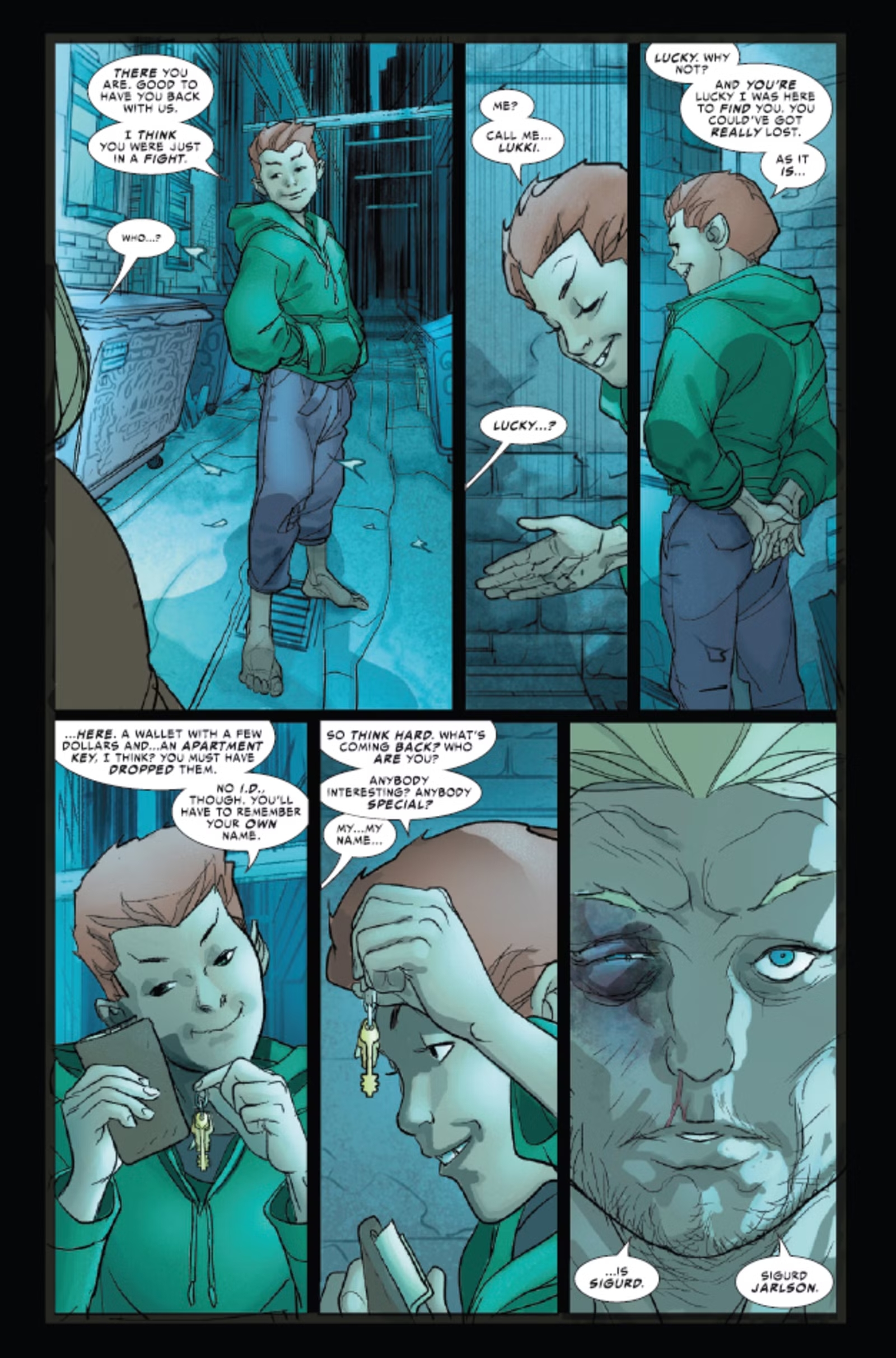 Радужный мост Биврёст, некогда соединявший миры, был уничтожен. Более того, Тор превратился в обычного накачанного мужичка по имени Сигурд Ярлсон. Его сопровождает загадочный персонаж Лакки. Не заметить в нём очередную маску Локи просто невозможно. Братишка, как всегда, бдит.