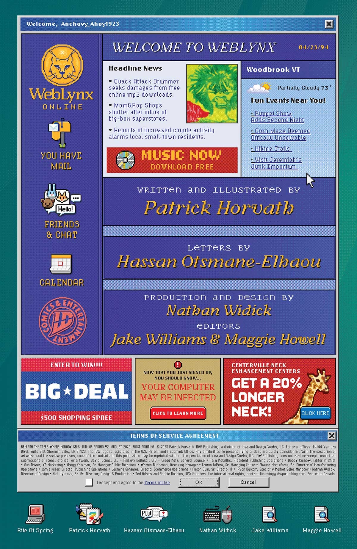 На этой неделе вышел второй выпуск Beneath The Trees Where Nobody Sees: Rite of Spring («В лесной глуши, где нет ни души: Весенний обряд»). И в нём читатели вернутся в Вудбрук — обычный тихий городок, где и живёт Саманта Стронг, главная героиня оригинального комикса.