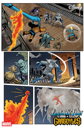 Marvel Comics и Dynamite Entertainment использует преимущества колаборации с корпорацией Disney — показали новые страницы к кросоверу Fantastic Four/Gargoyles. Напоминаем, что над сюжетом трудится сценарист и создатель оригинального мультсериала «Гаргульи» Грег Вайсмен. Визуальной частью занимался Энид Балам (TVA).