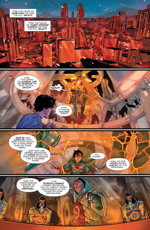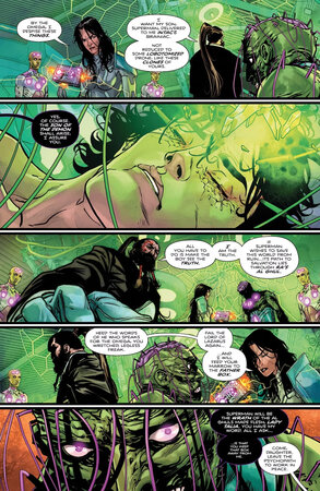 На протяжении всего выпуска Кал-Эл переживает разнообразные ментальные потрясения, которые ему устраивает Брейниак по приказу Раса. Зачем? Вот такой вот способ промывки мозгов, чтобы в дальнейшем использовать силы последнего сына Криптона в свою пользу. И да, Талия аль Гул, как и в оригинальном комикс-каноне, разделяет взгляды отца.