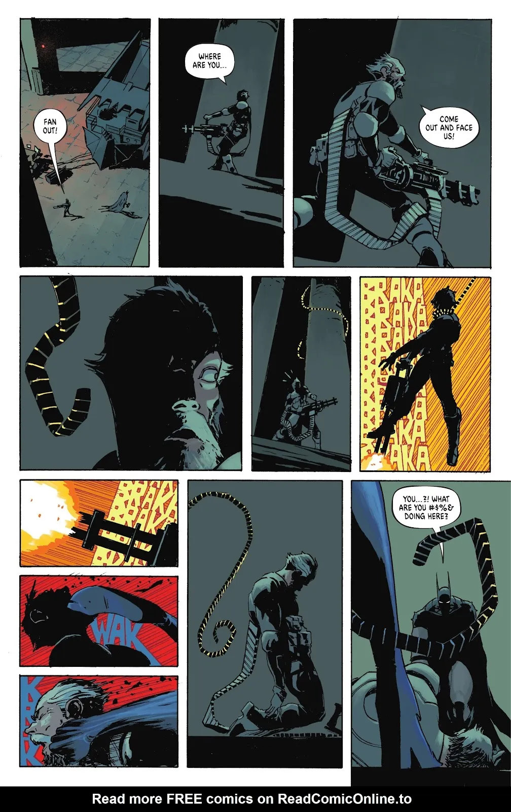 Ну а в конце номера Бэтс и Альфред решаются дать бой злодею-качку. И к ним присоединяется Женщина-кошка.