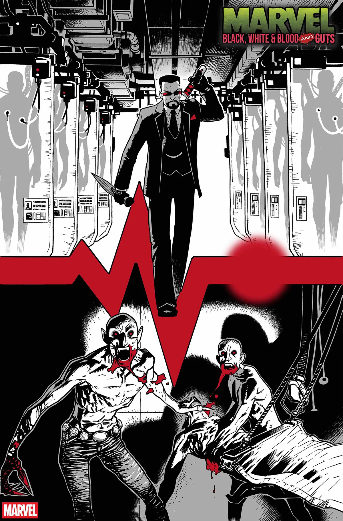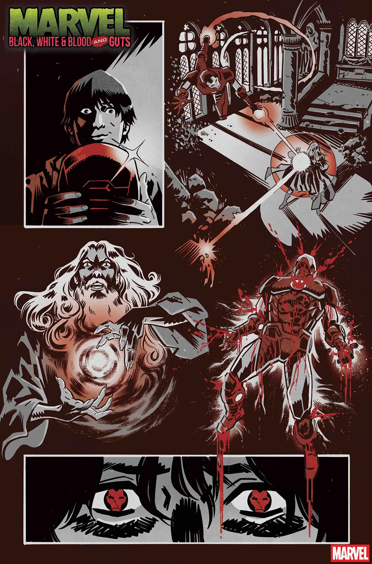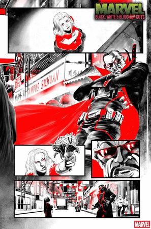 Мы как-то писали, что Marvel Comics готовит новую чёрно-белую и кровавую антологию под названием Marvel: Black, White & Blood and Guts. Теперь издатель показал пару страниц.