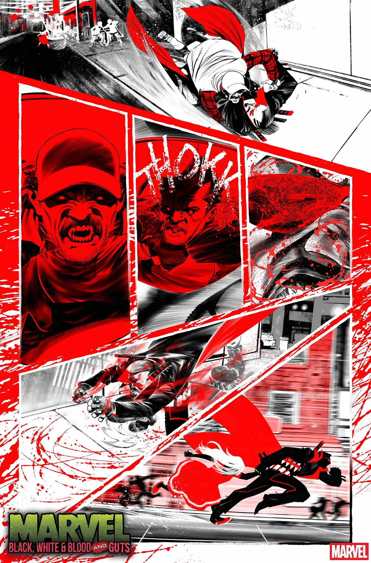 В продажу Marvel: Black, White & Blood and Guts #1 поступит 8 октября, когда в Америке тыквы начнут появляться на порогах домов, а вся страна погрузится в предвкушение Хэллоуина. Любителям кровавых историй и фанатам поджанра «страшилки и супергерои» должно понравится.