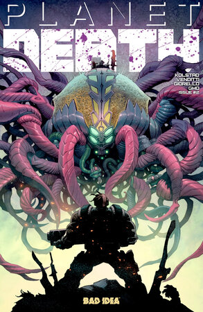 Этими весной и летом мы часто писали о комиксе Planet Death от издательства Bad Idea Comics. Мы также показали пару чёрно-белых страниц из второго выпуска. Теперь нам дали увидеть новые из него, да ещё и в цвете. Обложка тоже имеется.
