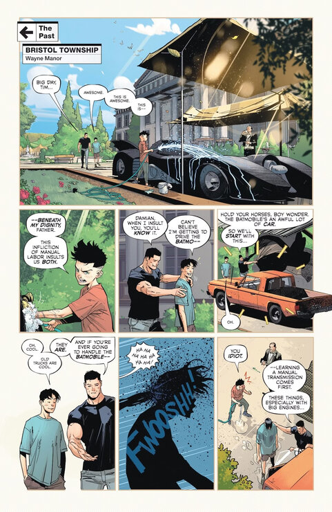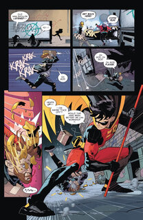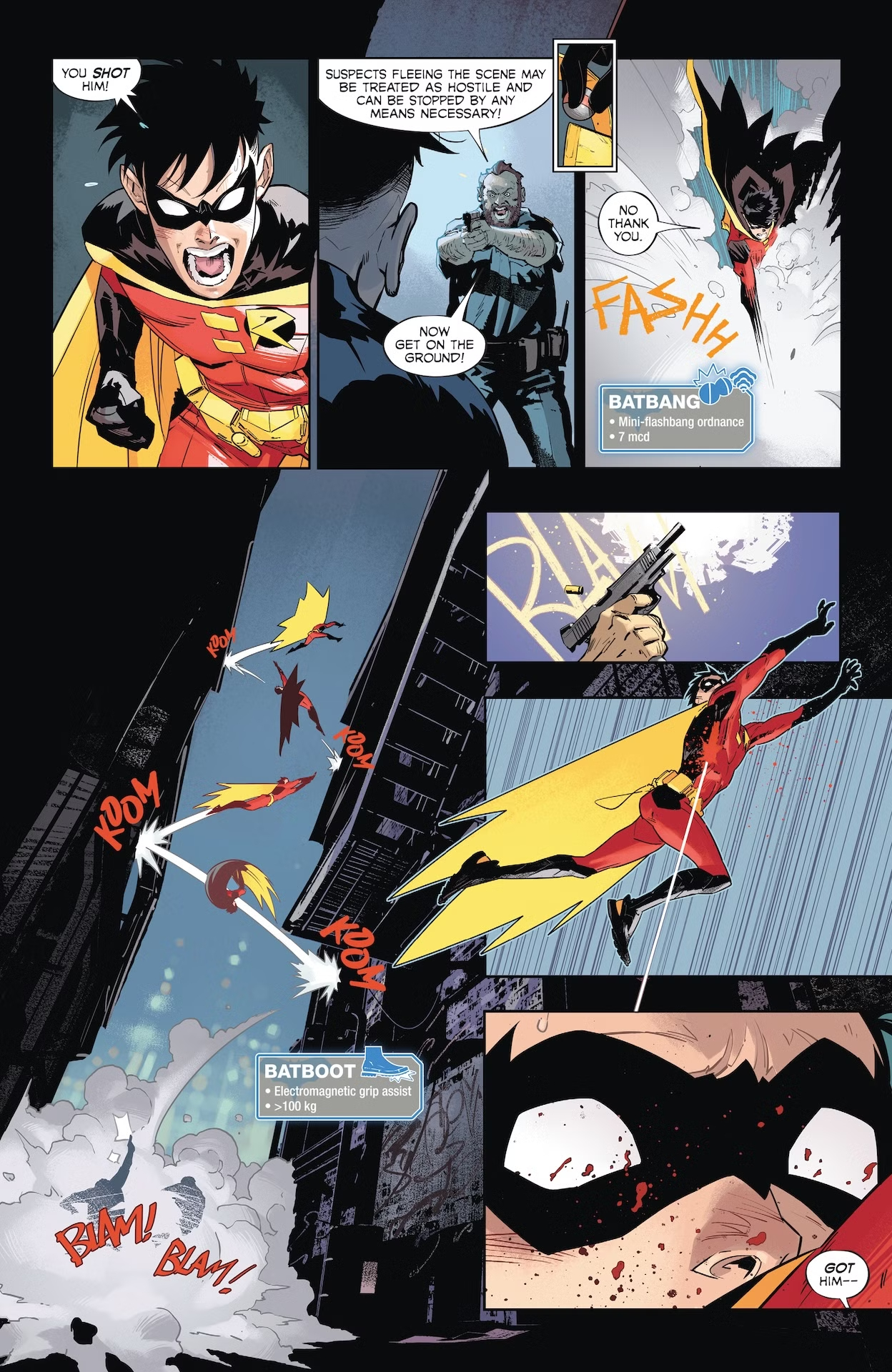 Да, тут фокус внимания с Бэтмена сместился на третьего Робина Тима Дрейка. Как видите по страницам, парень тоже продолжает геройствовать в Готэме. Вот только копы тут не те, что были раньше: стреляют в нашего героя, им дай только повод. Но не переживайте, Крестоносец в плаще тоже будет.