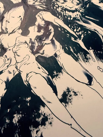 Вы только посмотрите на пасть, да тут же рай для дантистов… которых, правда, тут же сожрут на месте. Плюс огромные лапищи с длиннющими когтями и абсолютно пустые глаза. Картинка ещё не раскрашена, но уже сейчас производит довольное страшное впечатление. С таким созданием особо по душам не побеседуешь, только кулаком в морду. Кстати, что интересно в недавнем специальном ваншоте Absolute Evil Джокер тоже присутствует, и там он выглядел нормально, даже клоунского грима на нём не было. Легко вписался в компанию к отъявленным злодеям. Или уважаемым бизнесменам, здесь как посмотреть.