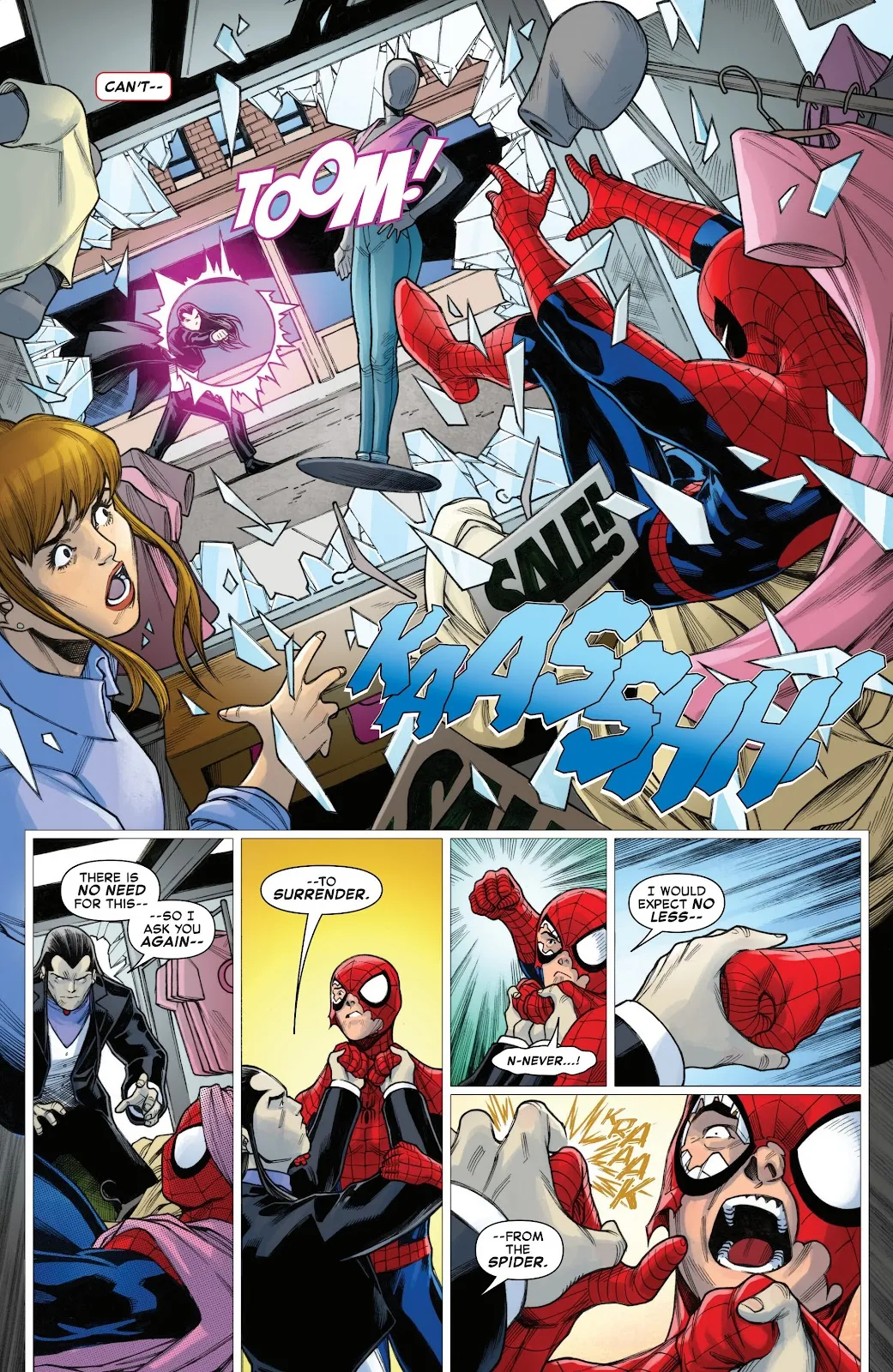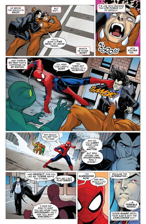 Паучок пытается остановить Морлана, но злодей легко отшвыривает его и намеревается убить. На последних страницах также появляется Крейвен-охотник, который здесь вполне себе положительный персонаж, а не отрицательный, как в классических комиксах.