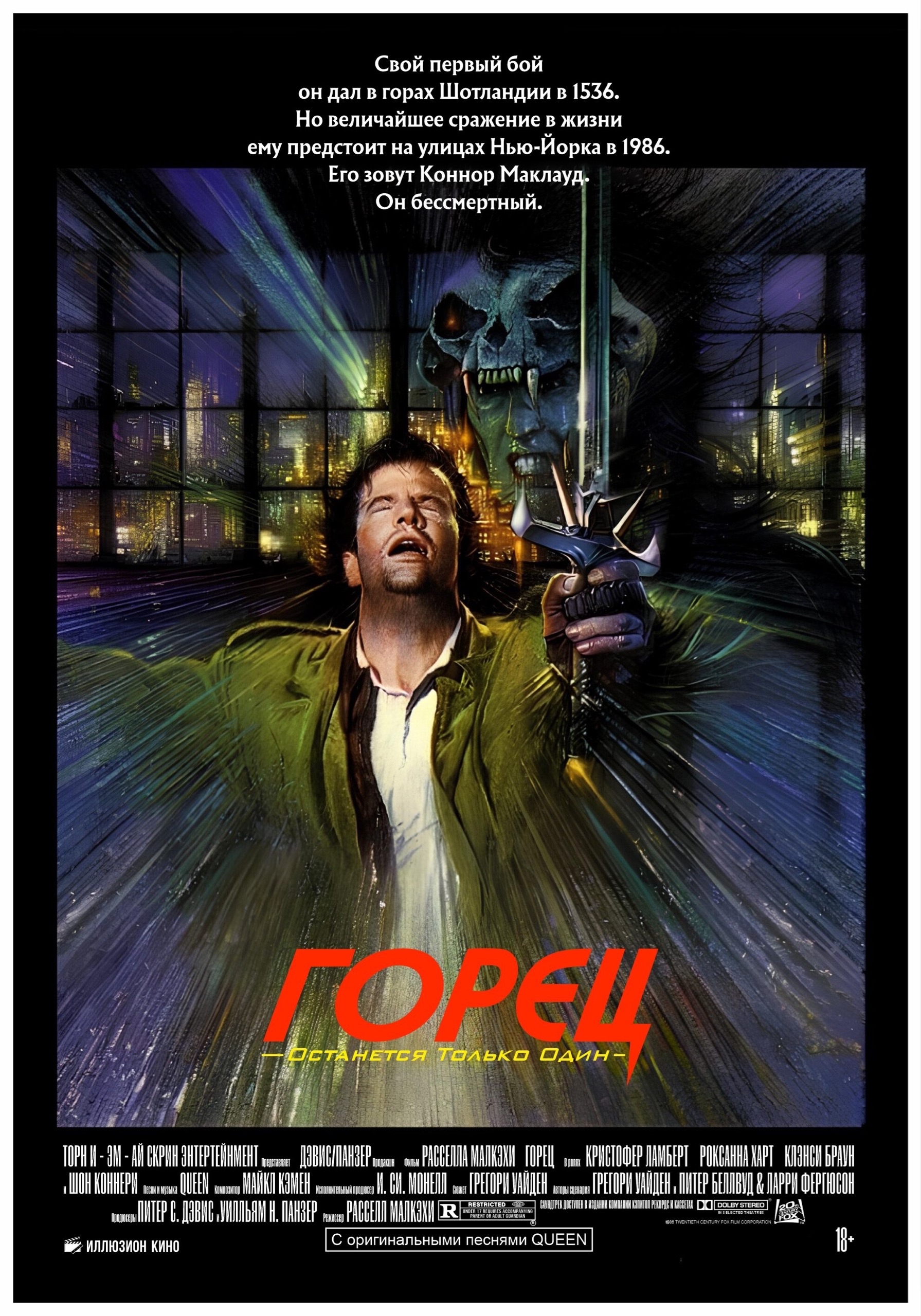 В российский прокат первый «Горец» вышел 2 октября. Фильм показывается в новой 4К-реставрации. Его также можно посмотреть в двух вариантах — на английском языке с субтитрами и в дубляже. На протяжении веков бессмертный Коннор Маклауд в исполнении тогда ещё молодого Кристофера Ламберта сражается с подобными себе, потому что в конце останется только один.