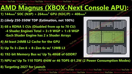 В тот же день ютубер Moore's Law is Dead (MLID) опубликовал видео с предполагаемым изображением процессора AMD Magnus APU, который, по его словам, станет основой следующей консоли Xbox. Инсайдер неоднократно подчёркнул, что Microsoft открыто сообщает партнёрам о запуске в 2027 году.